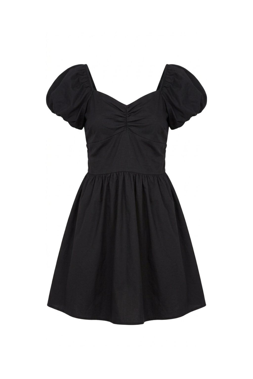 Bavlnené šaty s riasením v dekólte s gumou na zadnej strane pre maximálne pohodlie s puff rukávmi a sukňou strihanou do A.