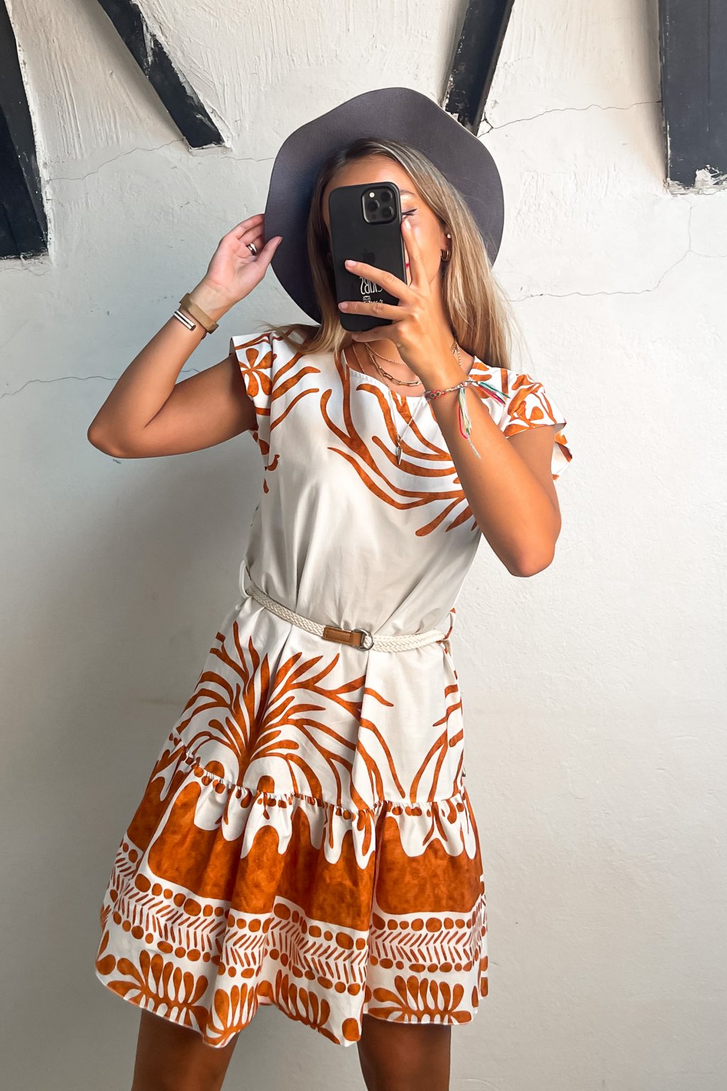 Ľahké letné šaty z 98%nej bavlny v bielej a oranžovej farbe s opaskom.