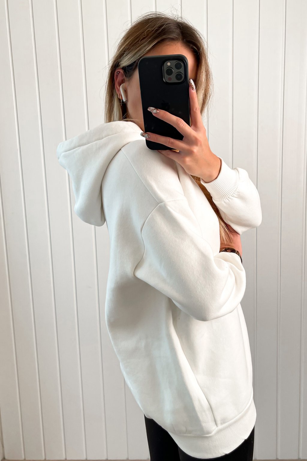 Biela mikina s kapucňou