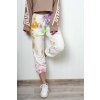 Biele tepláky s jedinečným batikovaným dizajnom, ktorý je na každom kúsku ináč rozložený, s bočnými vreckami, patentmi pri členkoch a elastickým, na šnúrku sa sťahujúcim pásom.