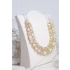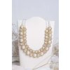 Preplietaný náhrdelník s priesvitnými kryštálovými korálkami a bielymi perlami doplnený o zaplietanú zlatú retiazku so zapínaním na karabínku a predlžovacou retiazkou pre nastavenie dĺžky.