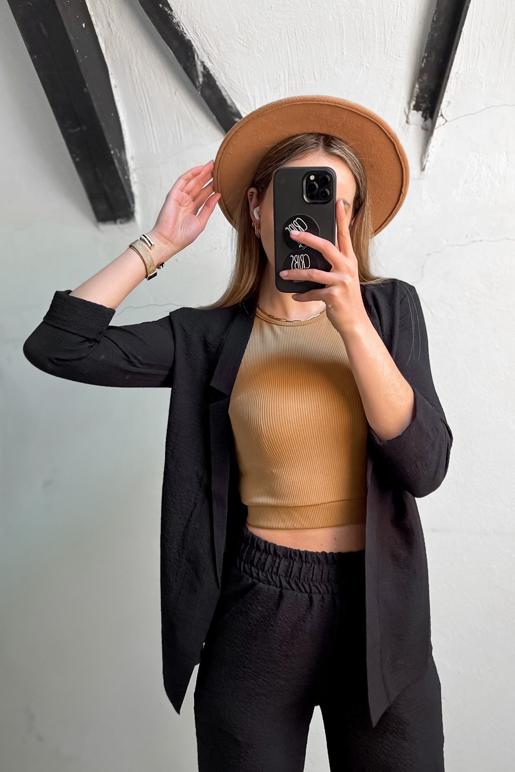 Modelka Laura má výšku 173cm a bežne nosí veľkosť S a na sebe má veľkosť S.