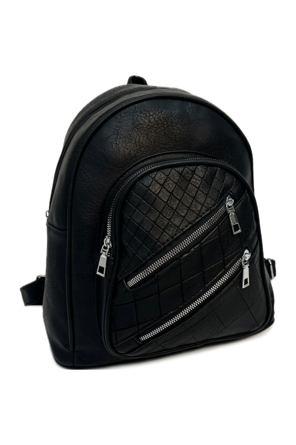 Čierny ruksak s prešivaním a ozdobnými zipsami