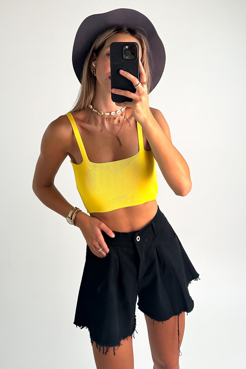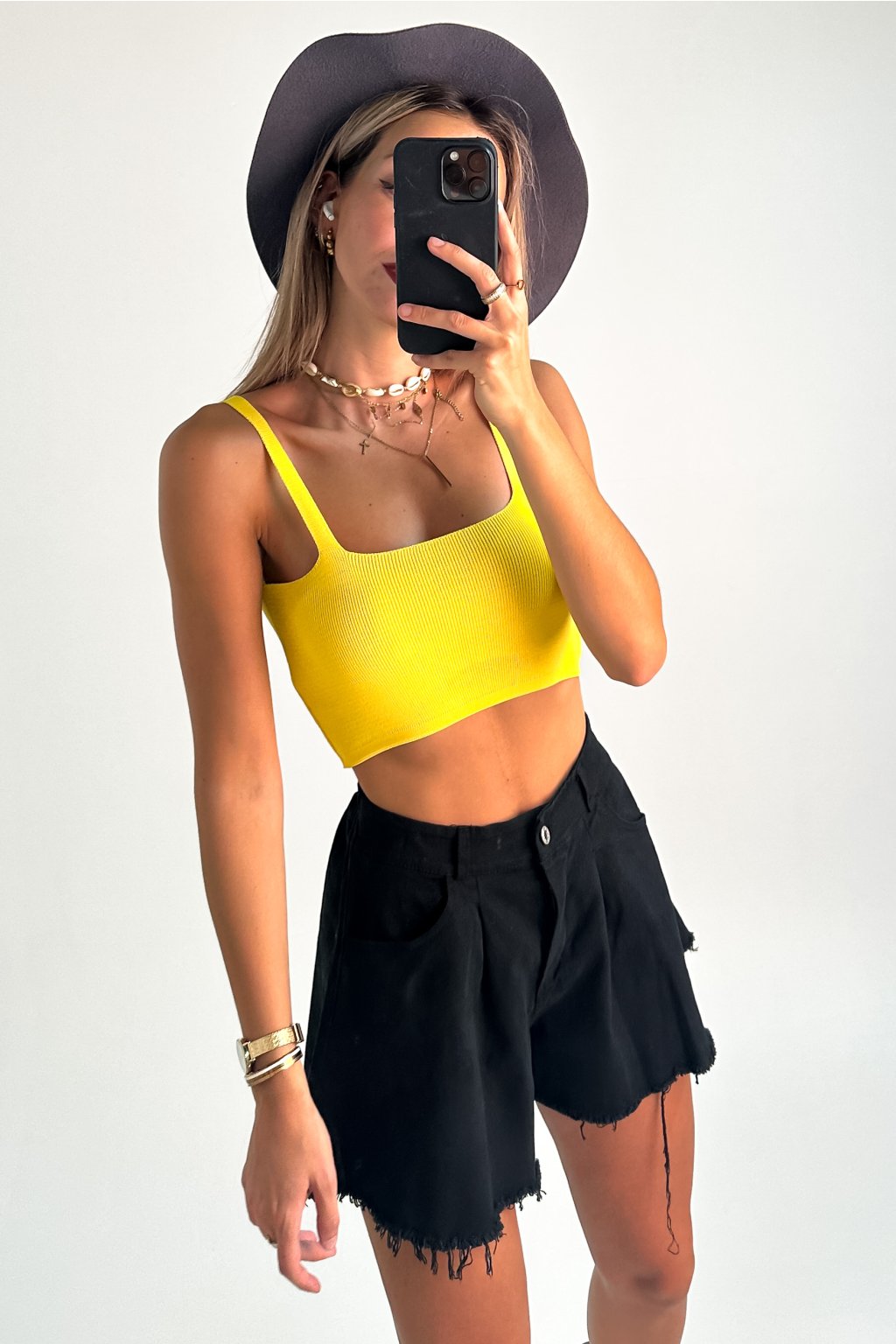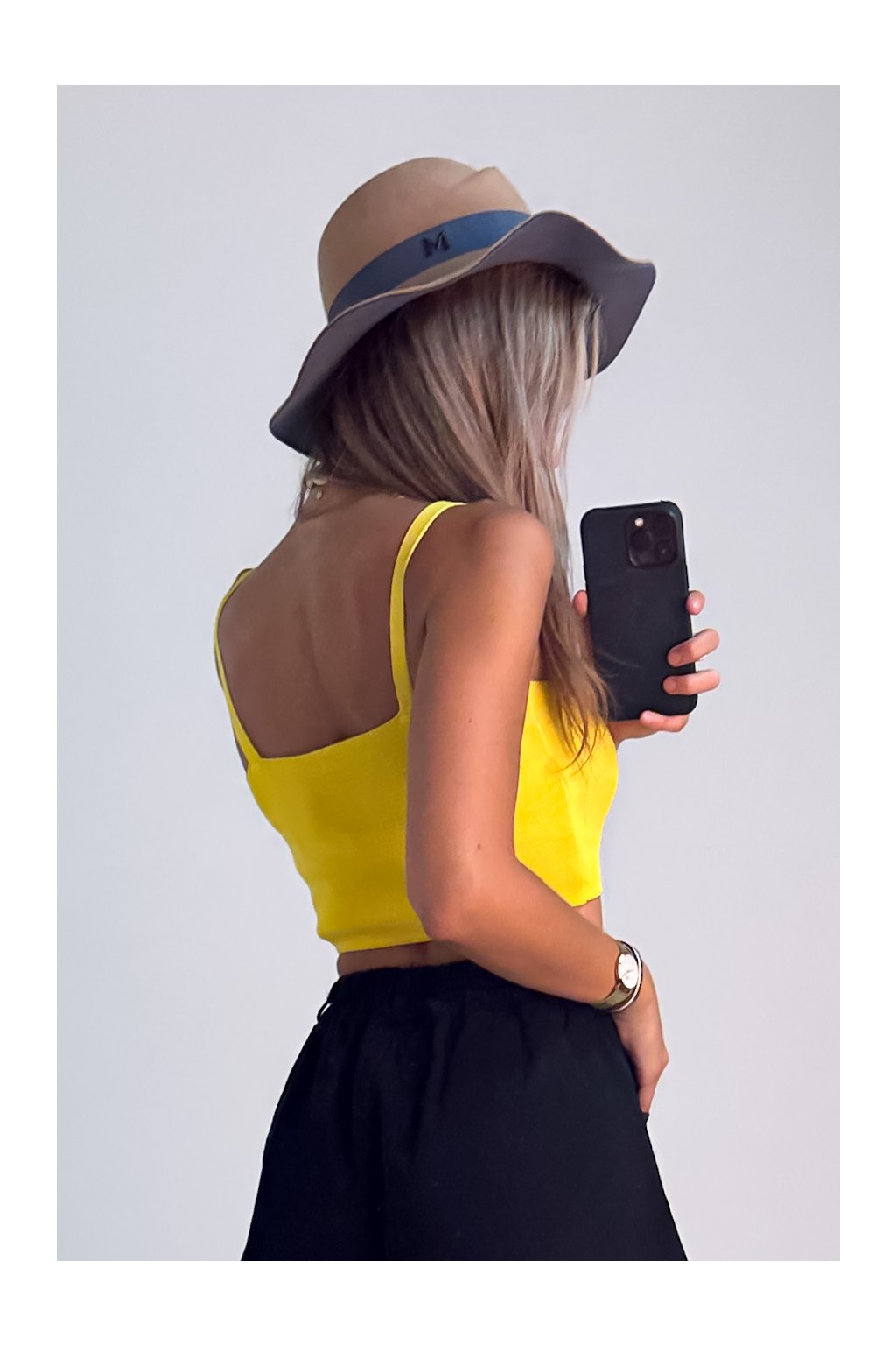 Crop-top z úpletu žltý