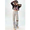 Cropnutá mikina vo voľnom strihu s kapucňou čierna