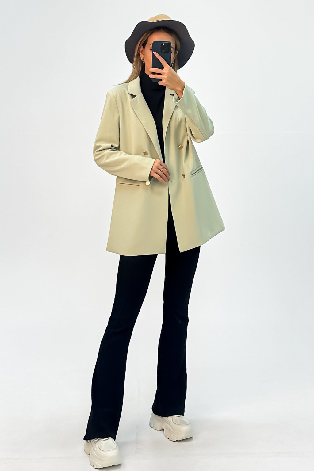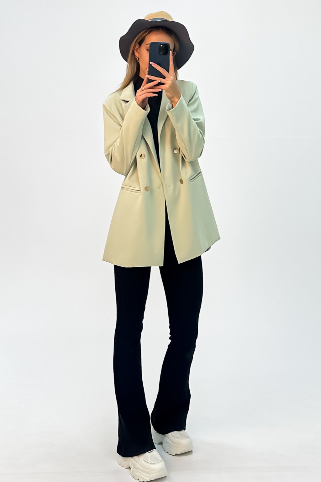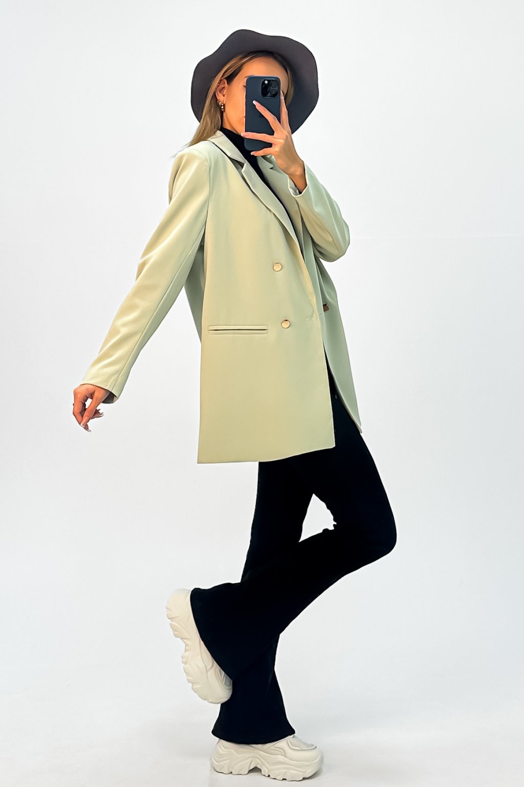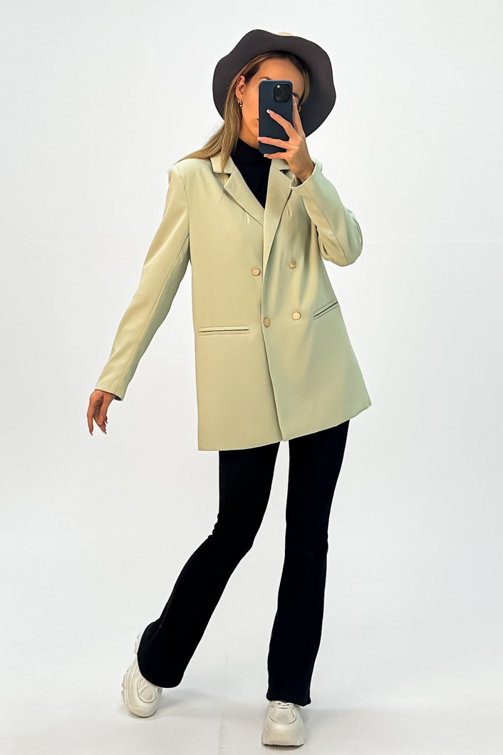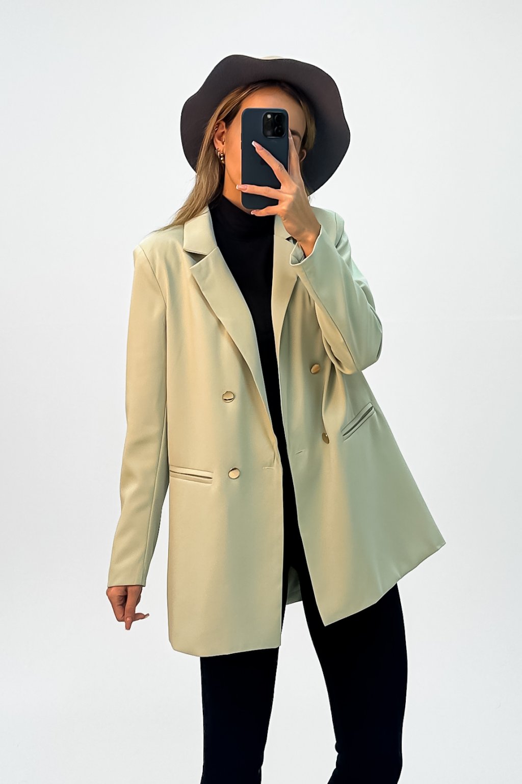 Dámske oversize sako v pánskom strihu zelené