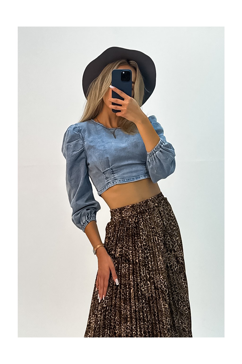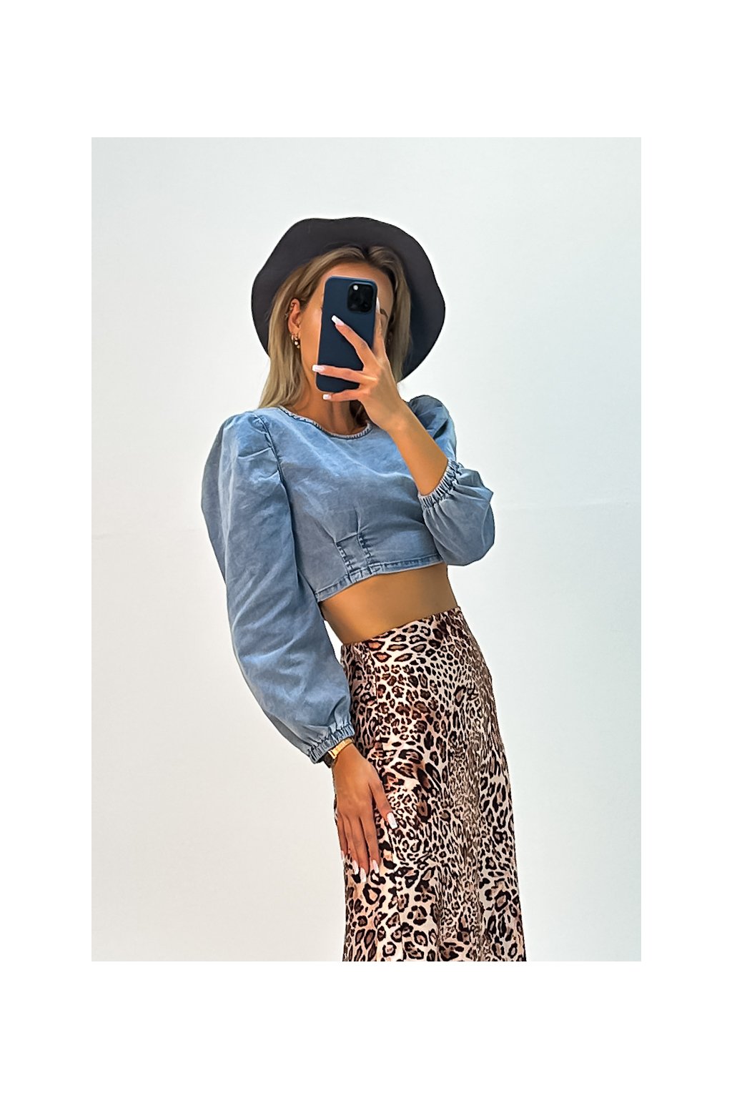 Denimový top s puff rukávmi
