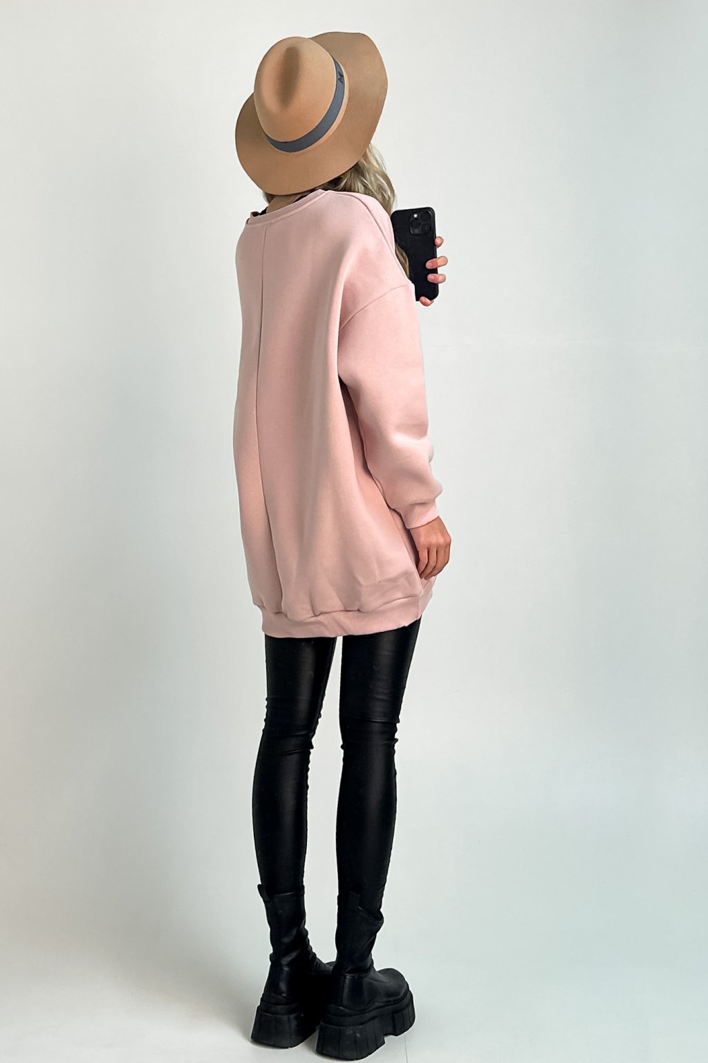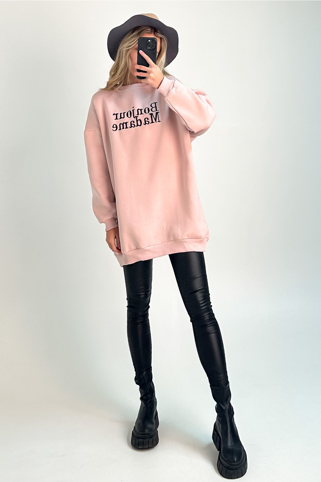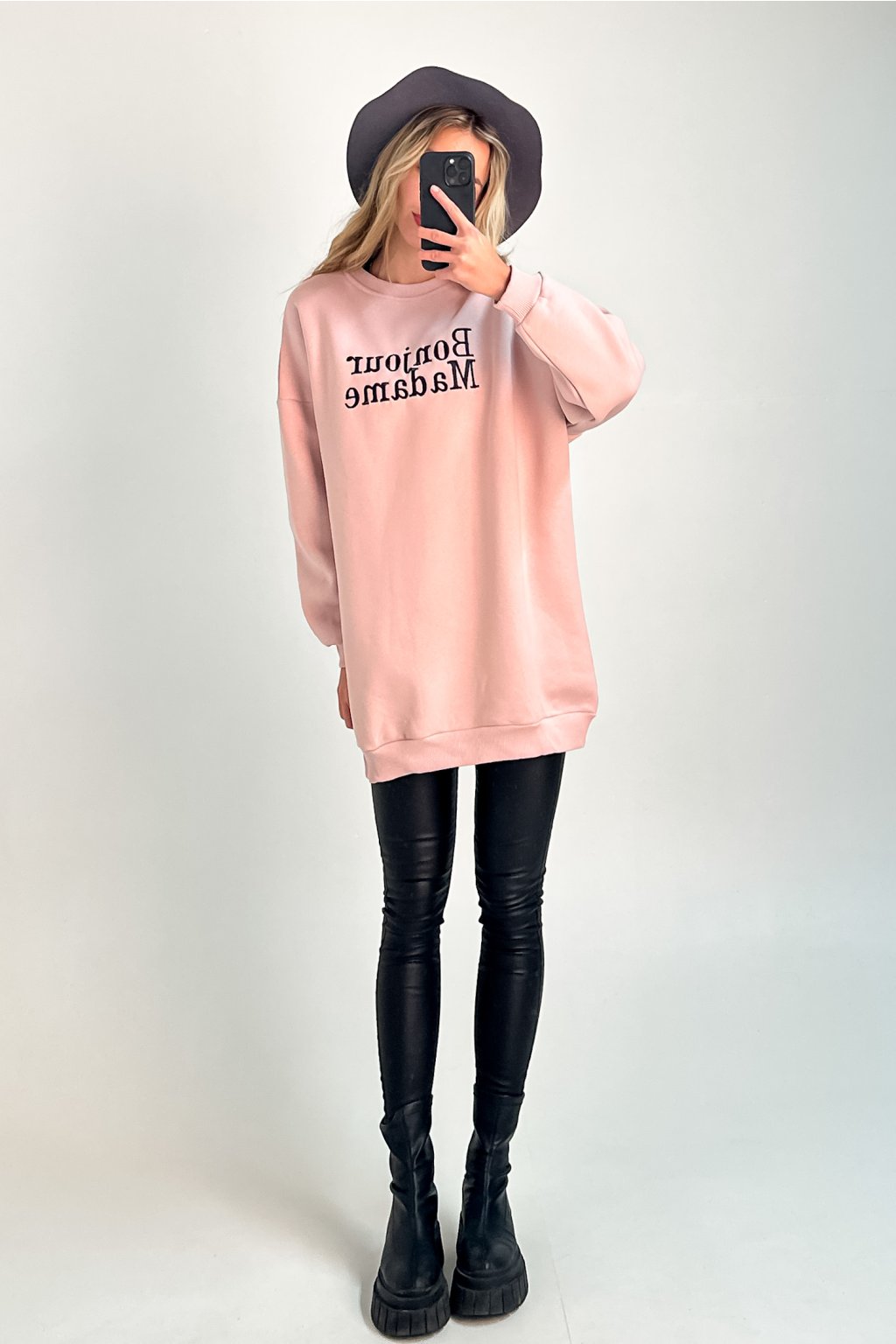 Zateplená oversize dlhá mikina s vyšívaným nápisom " Bonjour Madame ". Možne nosiť aj ako šaty.