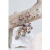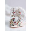 Masívne visiace náušnice v striebornej farbe vykladané farebnými kamienkami s centrálnym kameňom v zlatistých odleskoch so zapínaním na ozdobnú puzetku.
