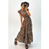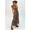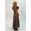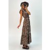 Dlhé vzorované šaty s volánovými rukávmi gumou v páse a opaskom z rovnakého materiálu.