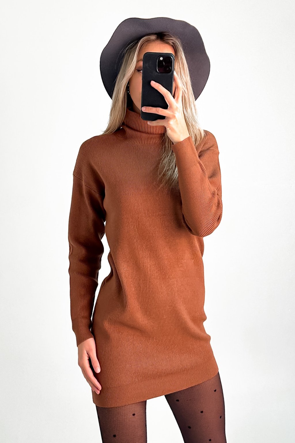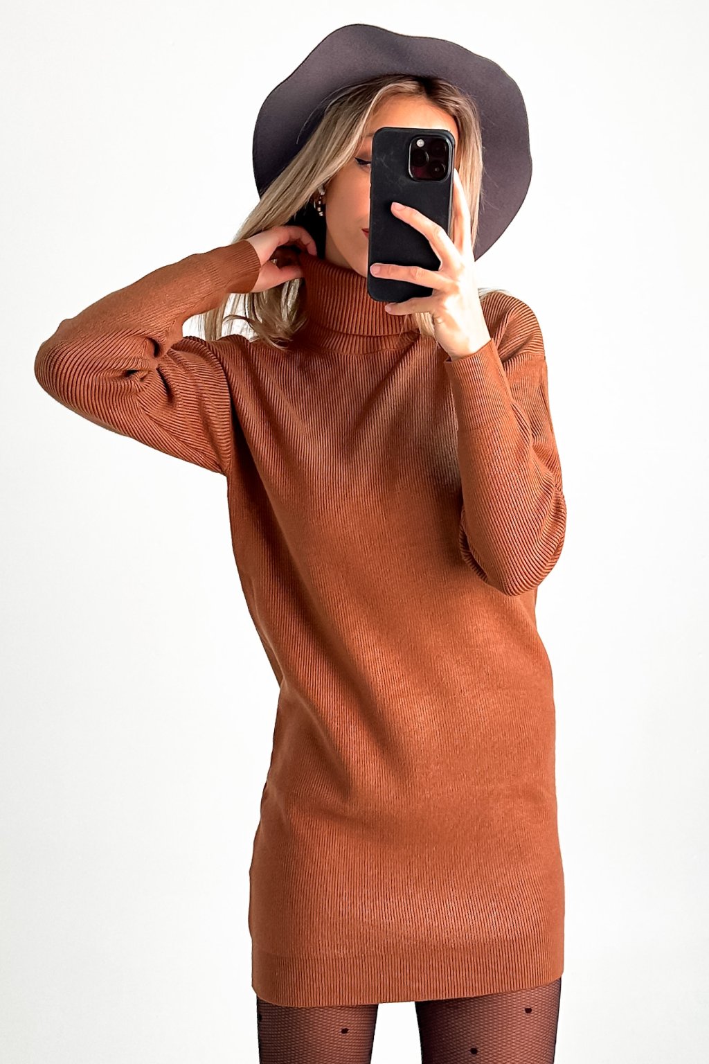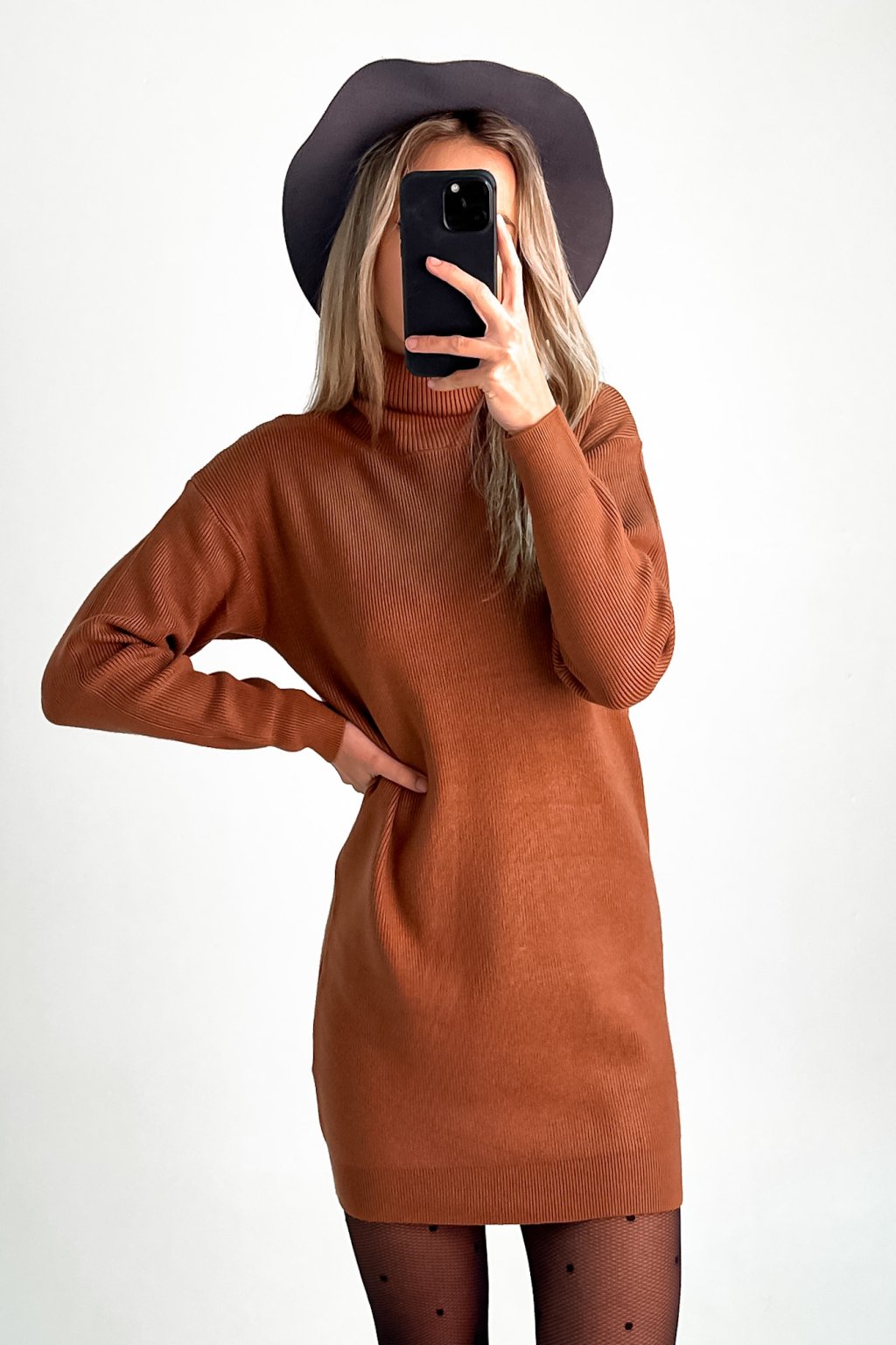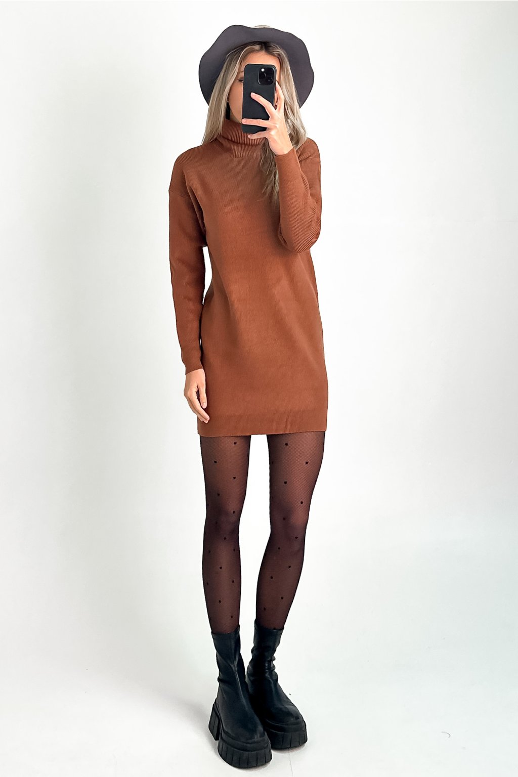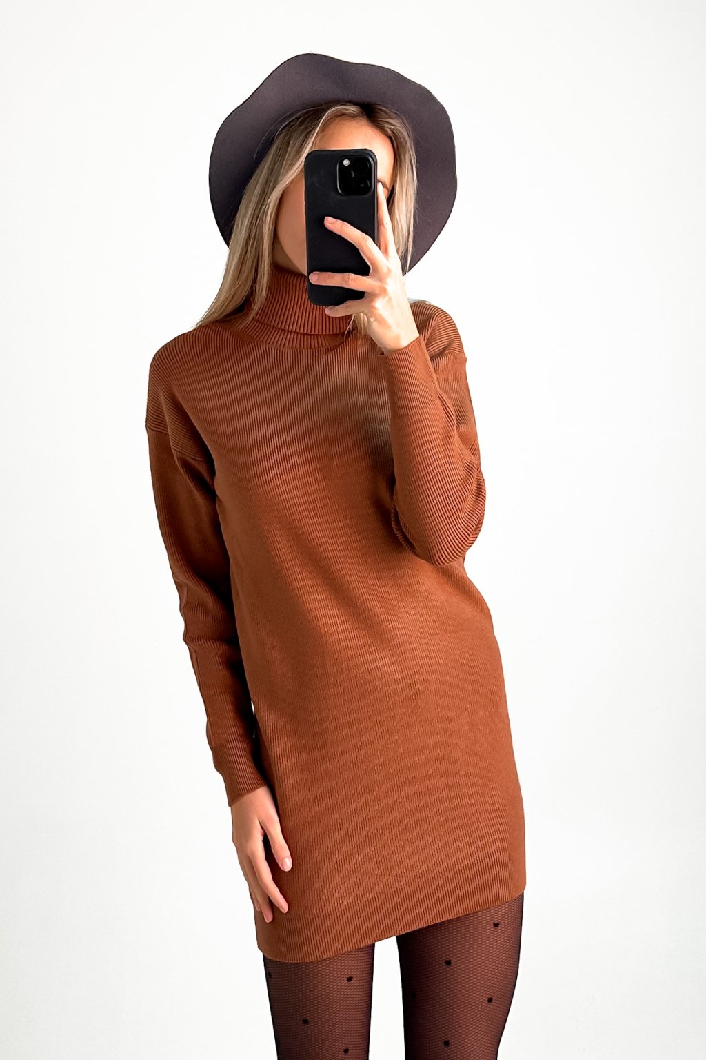 Dlhý rolákový sveter možné nosiť aj ako šaty ukončený patentom z príjemného materiálu.