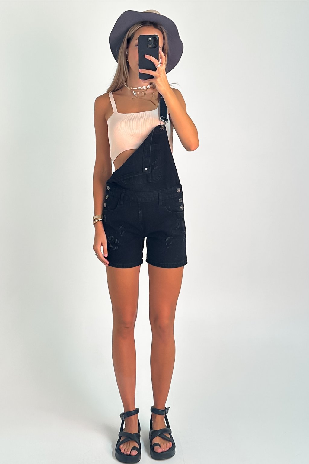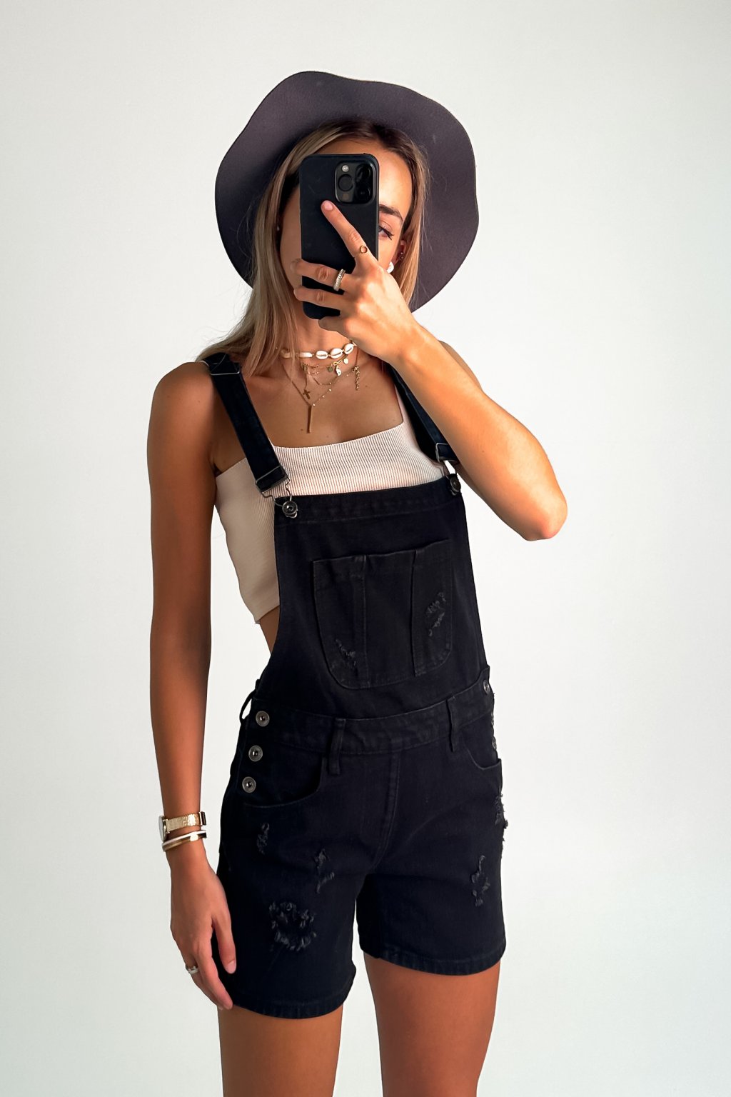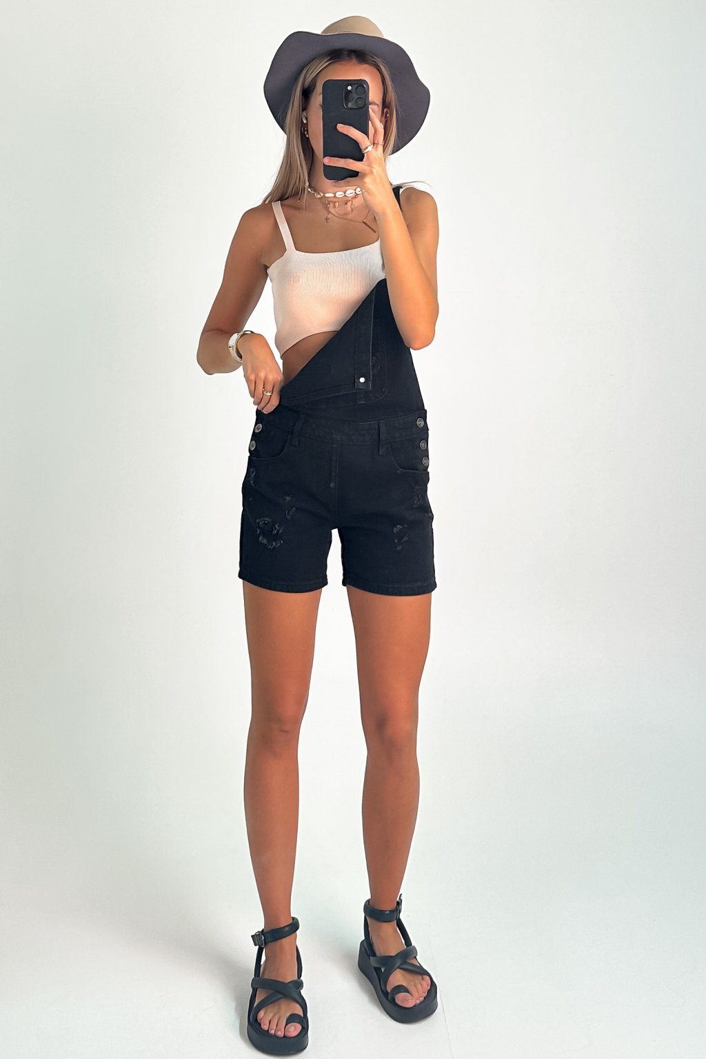 Modré denimové ačkové šórtky s vysokým pásom a s vreckami s odopínateľnou retiazkou prevlečenou cez vrecko šórtiek.