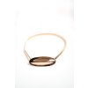 Zlatý pružinový opasok vyrobený z kovu s oválnou platničkou. Opasok sa zapína háčikom.
