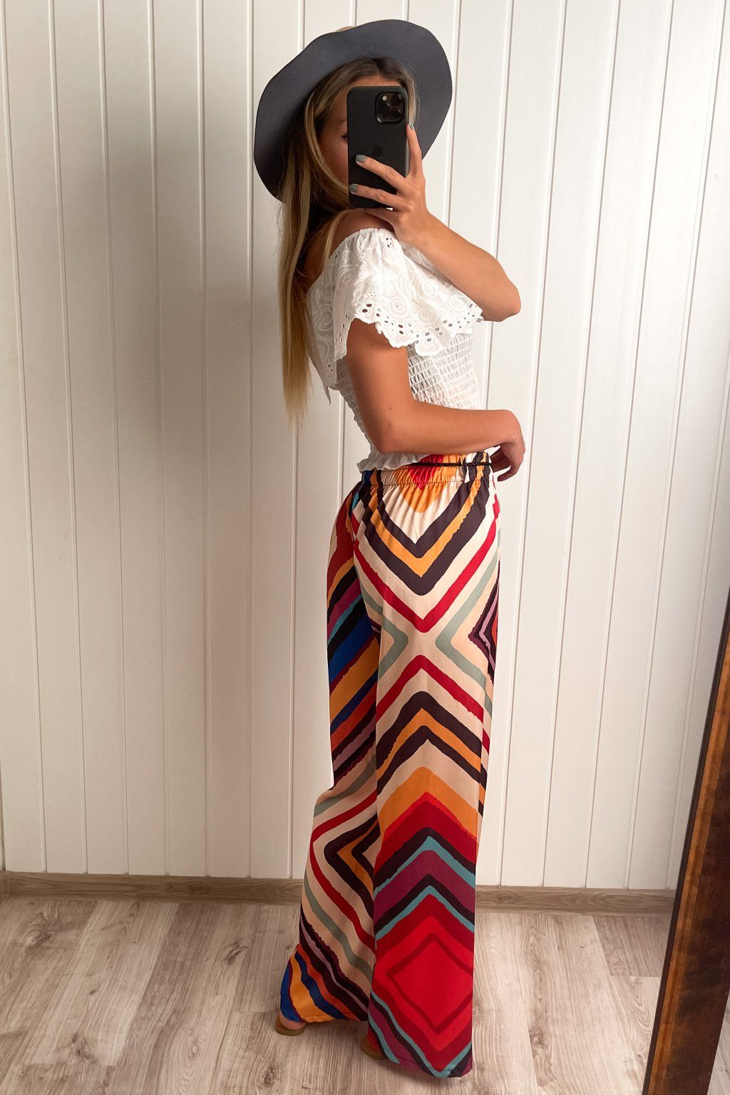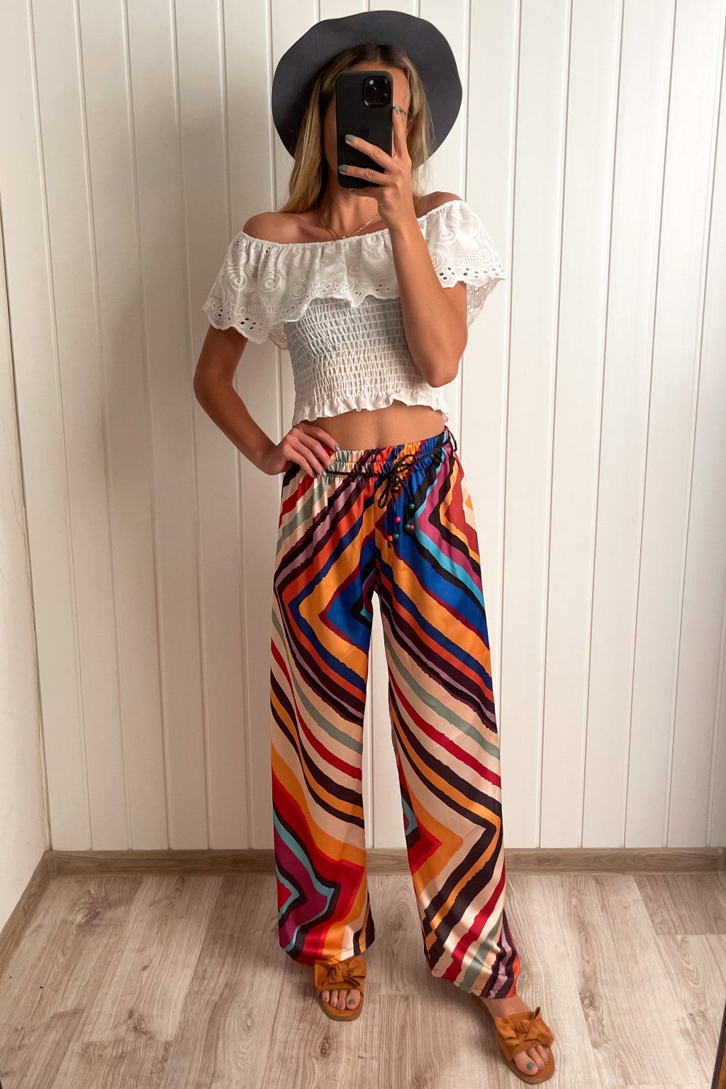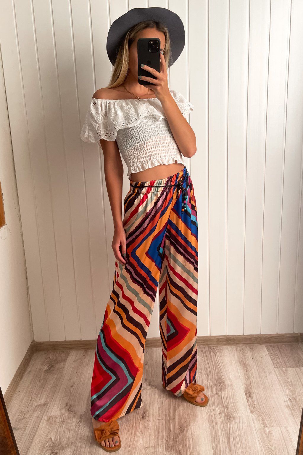 Hladké vzdušné nohavice vo výrazných farbách s gumou v páse.
