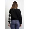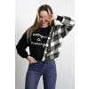 Štýlová čierna mikina s potlačou v kombinácii s károvanou časťou oddelenou károvaným volánikom.