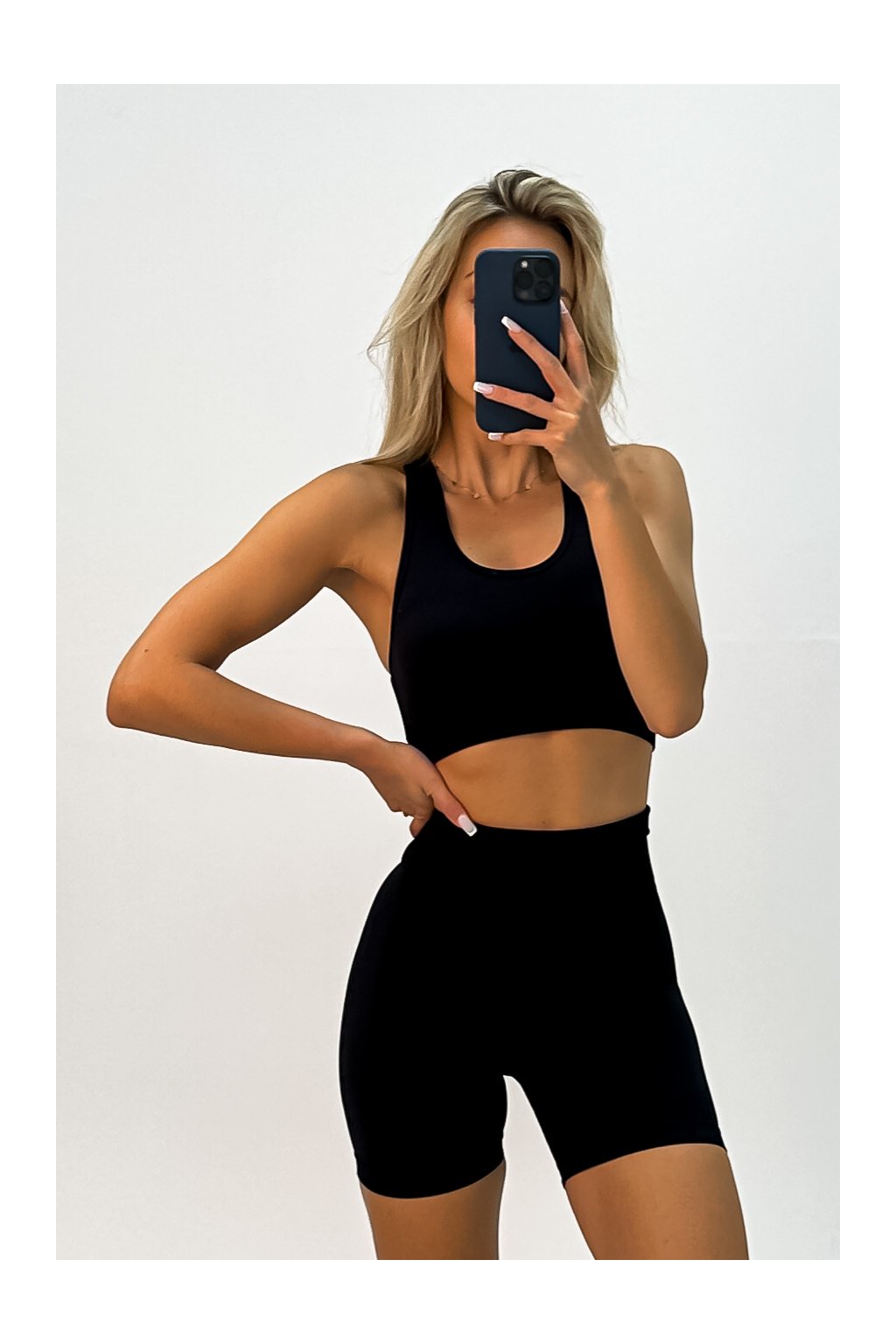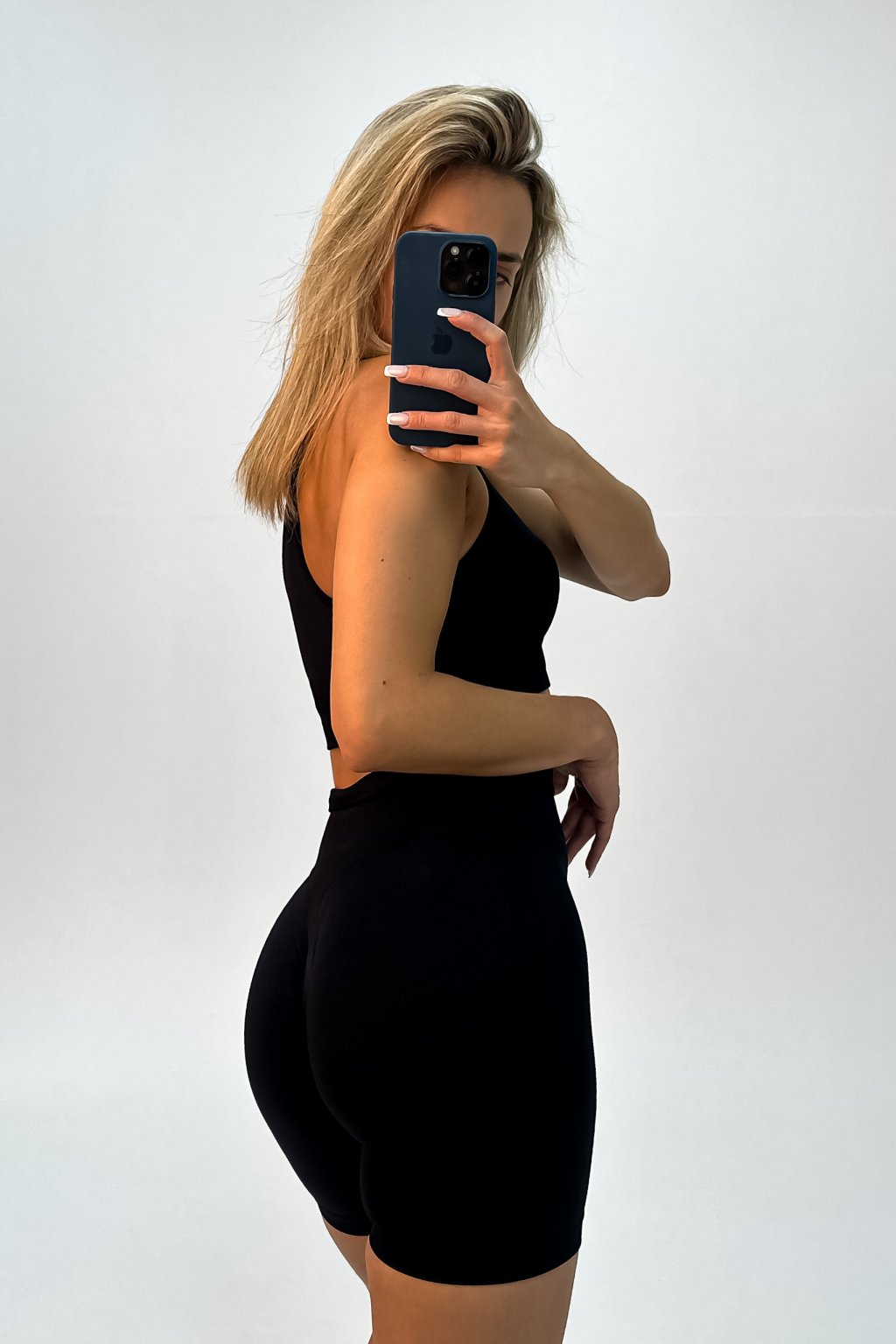 Pohodlné biker šórtky s vysokým pásom a s nariaseným push-up efektom.