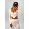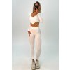 Komplet vrubkované push-up legíny s vysokým pásom a crop-top biely