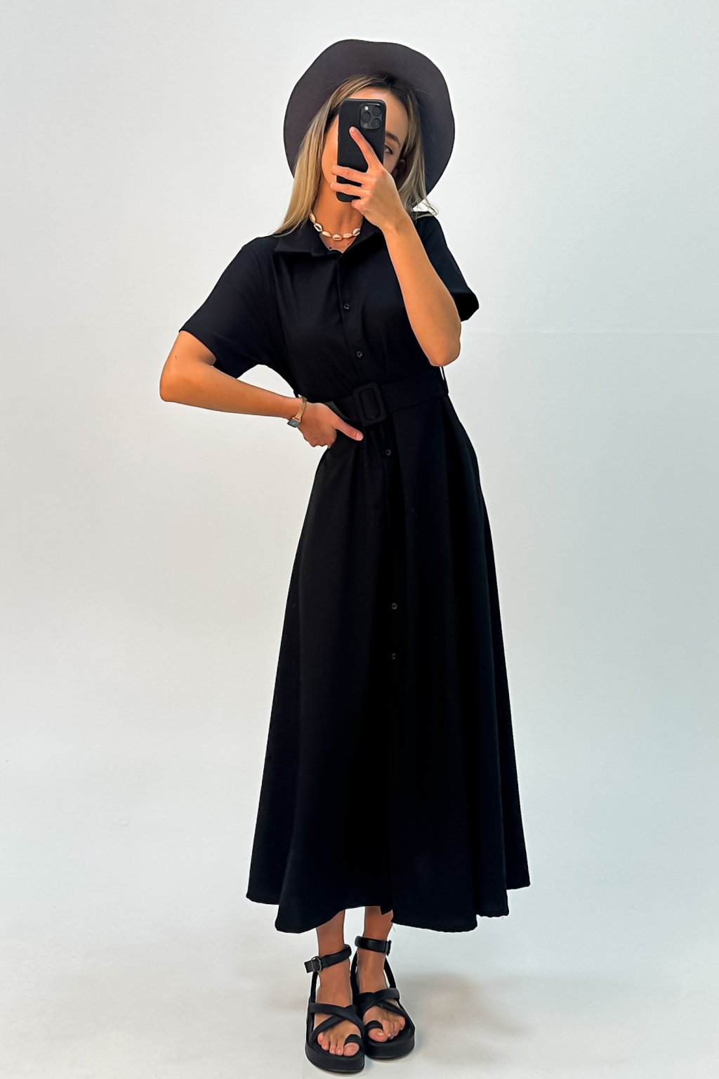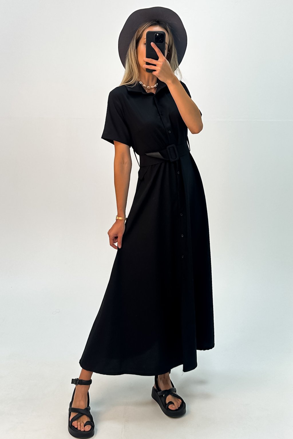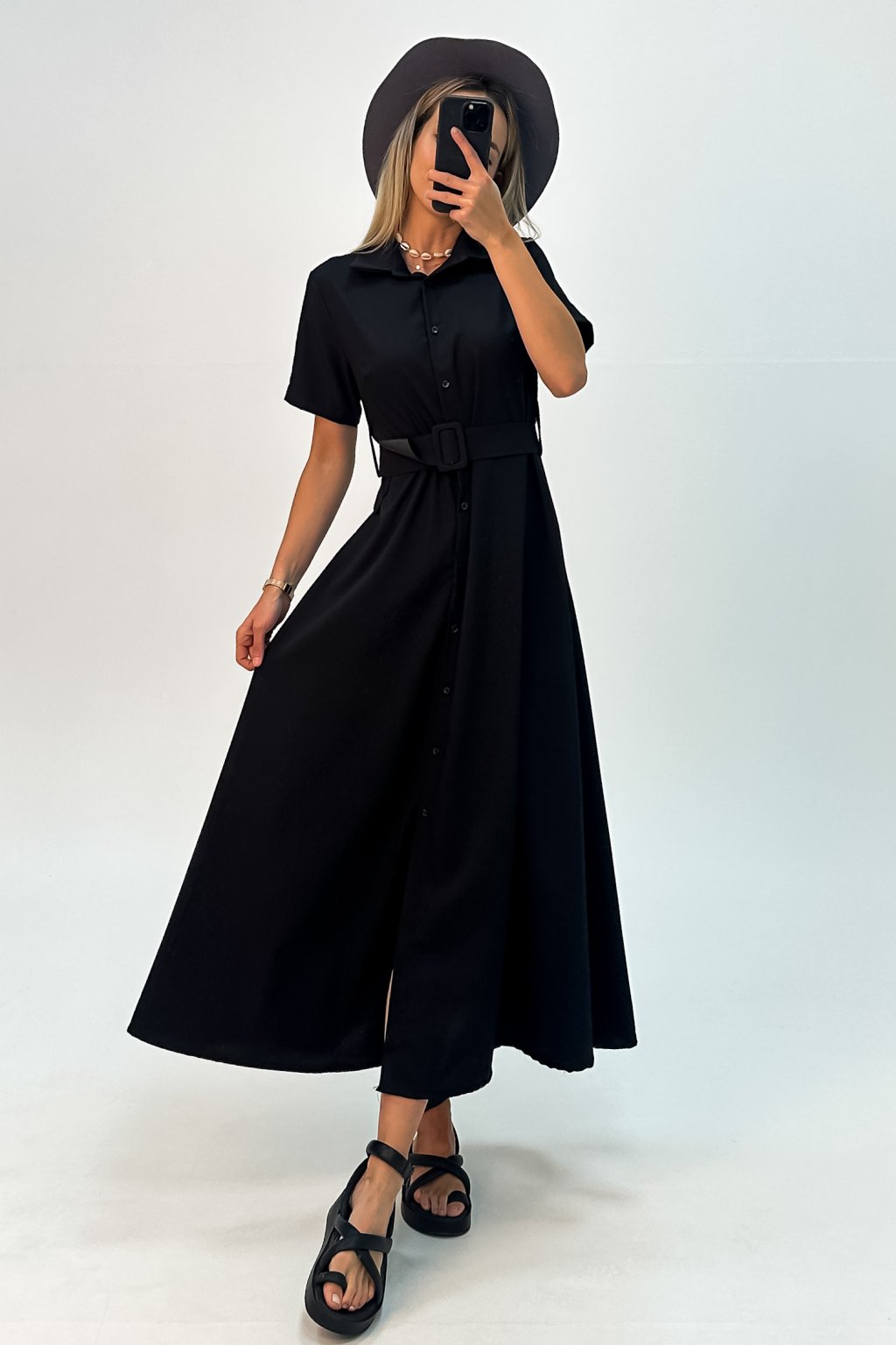 Dlhé košeľové šaty s gombíkmi po celej dĺžke a opaskom.