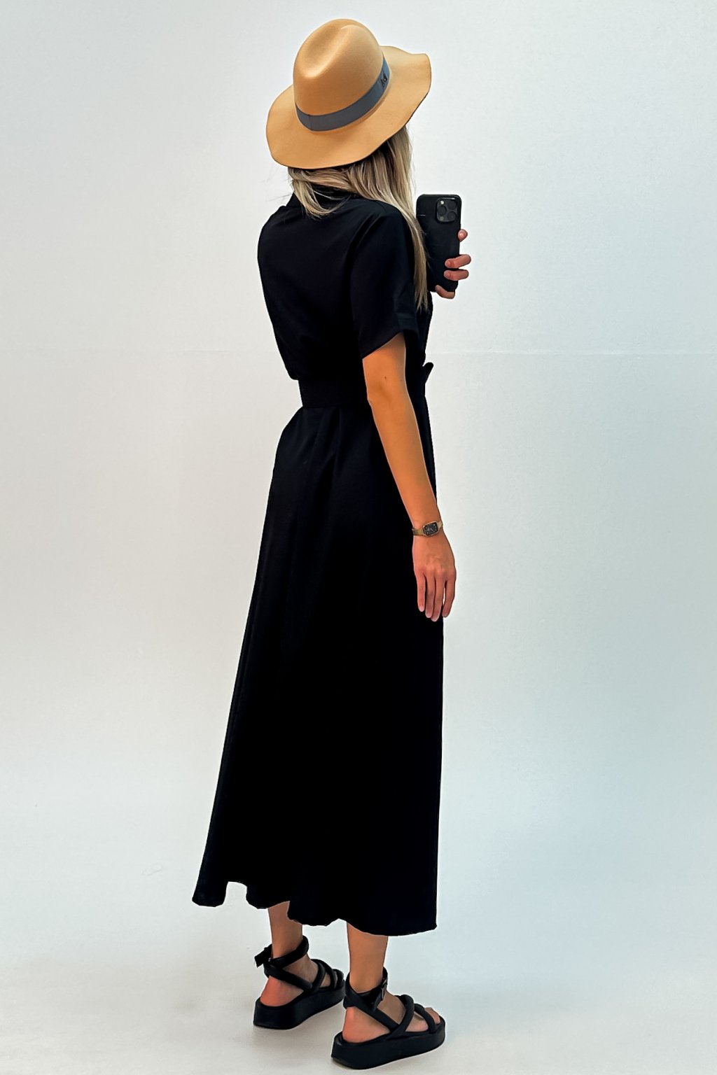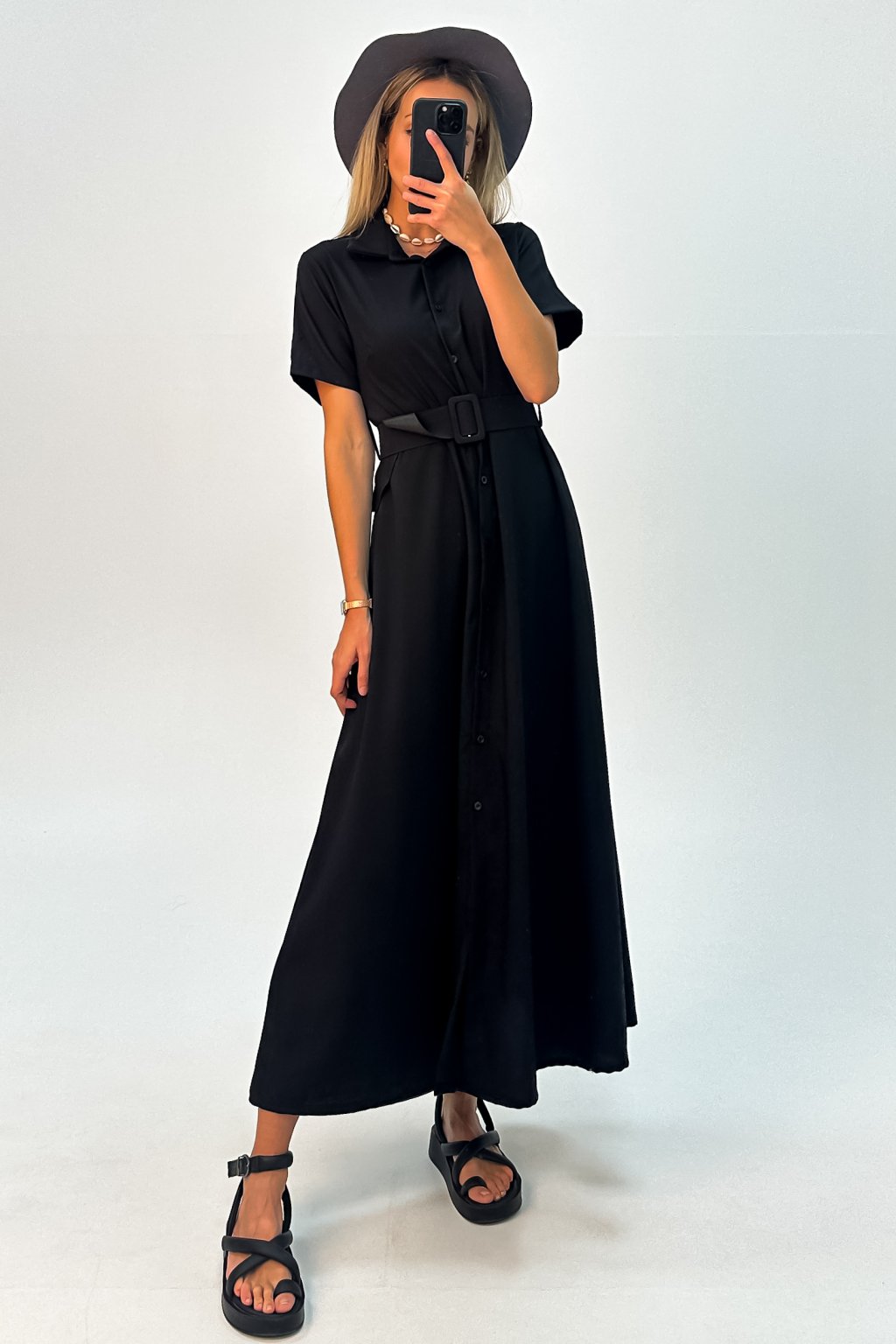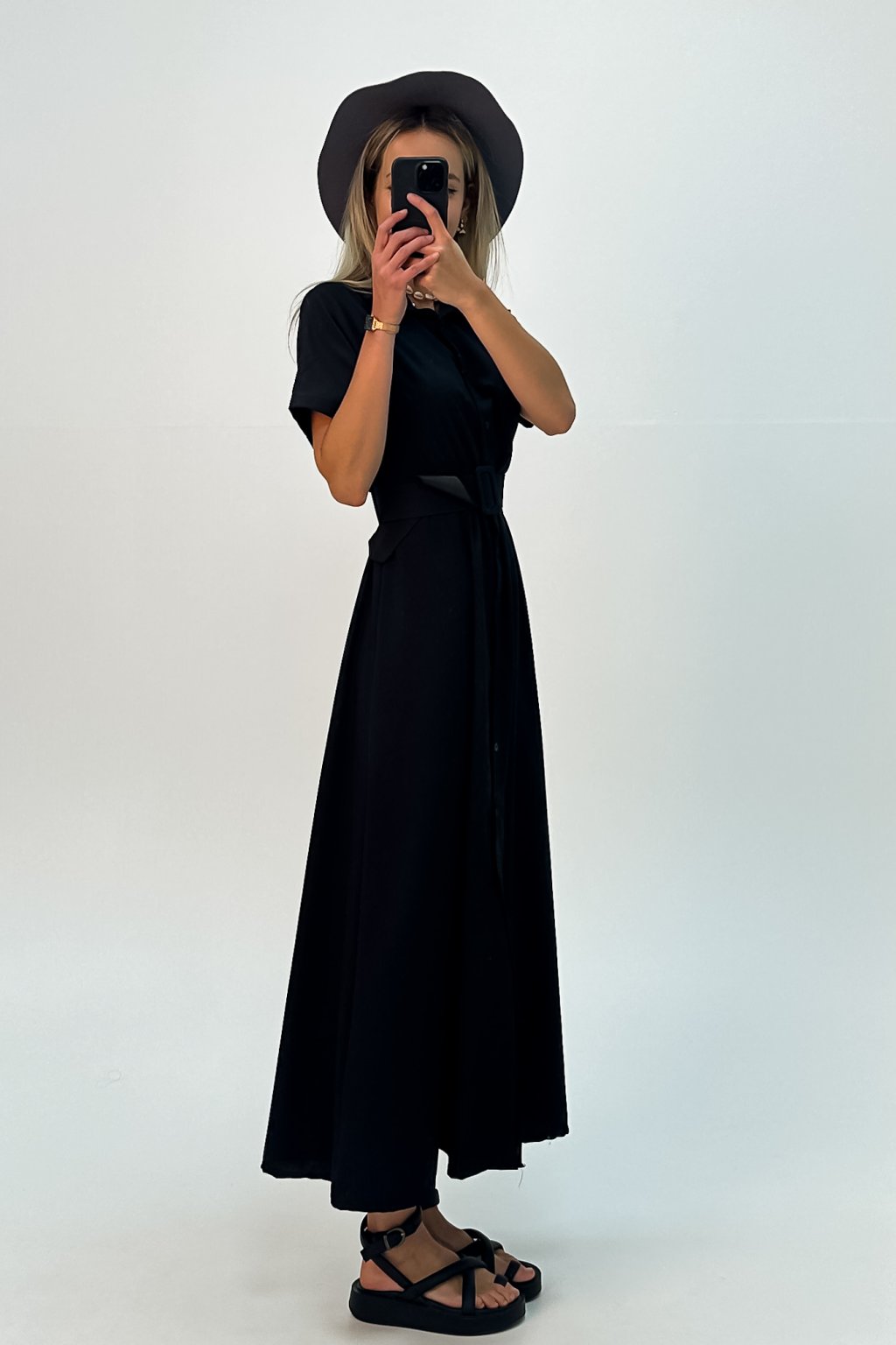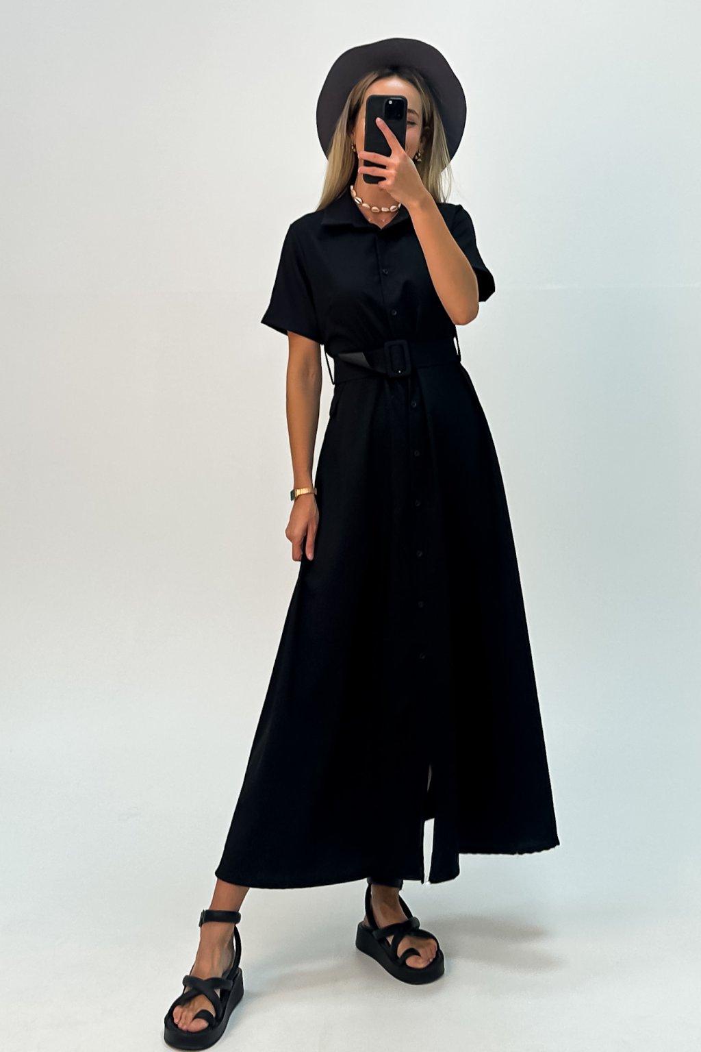 Dlhé košeľové šaty s gombíkmi po celej dĺžke a opaskom.