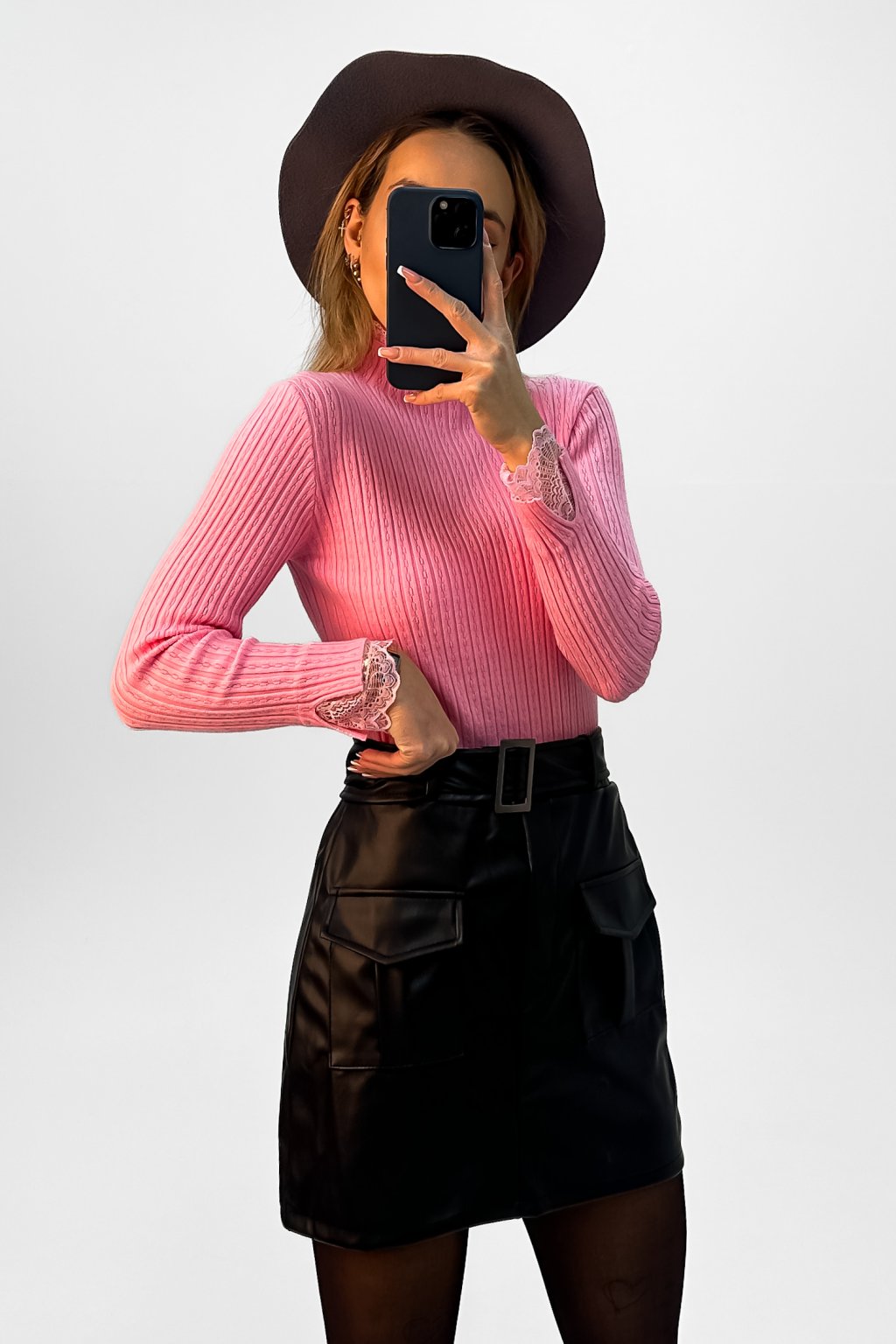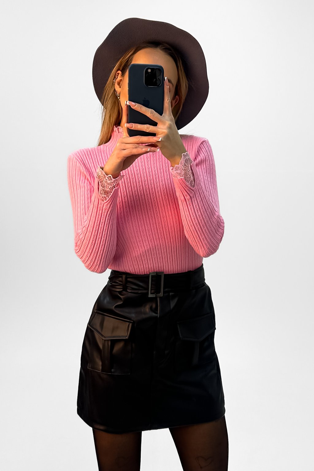 Koženková sukňa s vreckami v cargo štýle so zateplenou vnútornou stranou, gumou páse a opaskom.