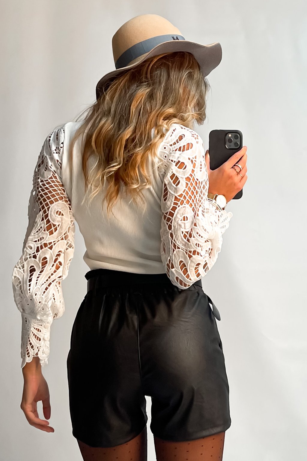 Čierne šórtky s vysokým pásom a gumou v páse s vreckami. Plus opasok ako darček