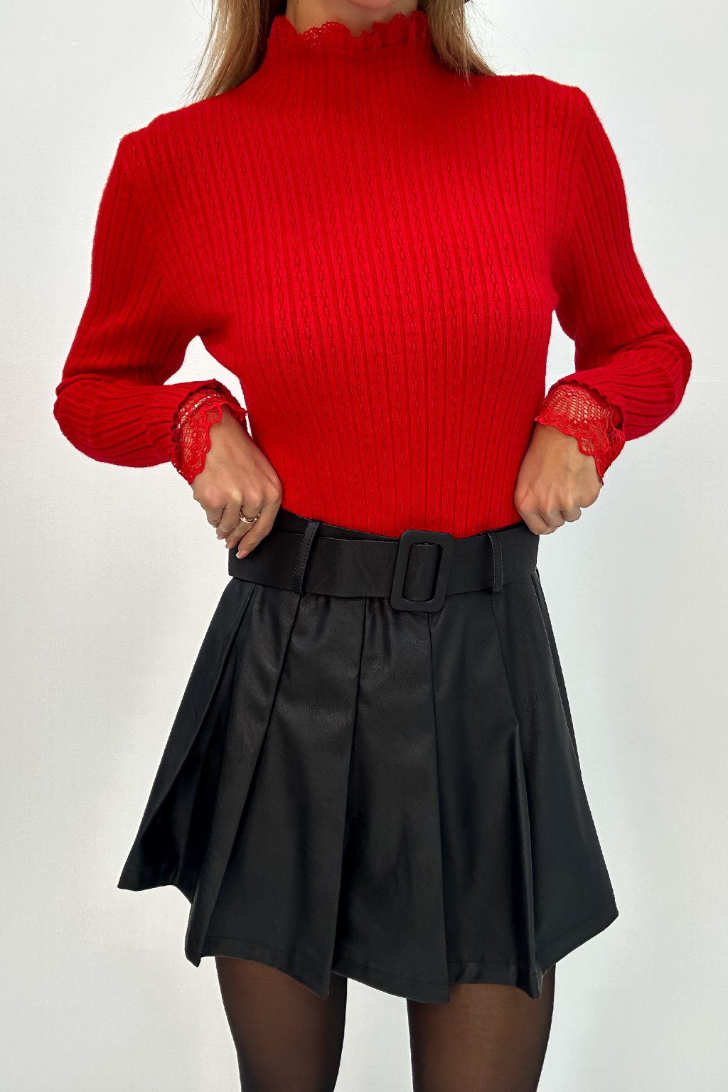 Šórtkami so skladanou sukňou s vysokým pásom a gomou v páse s opaskom.