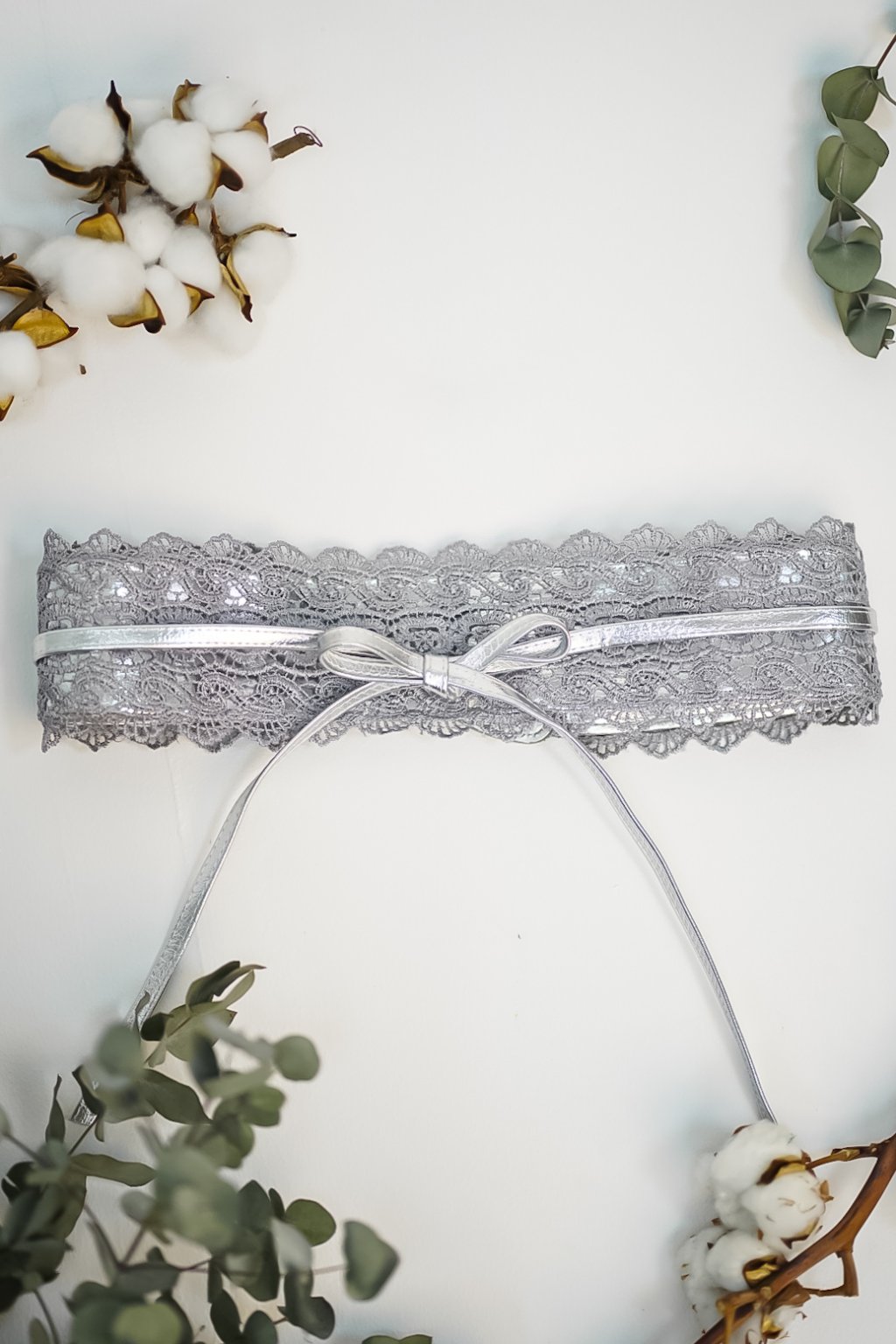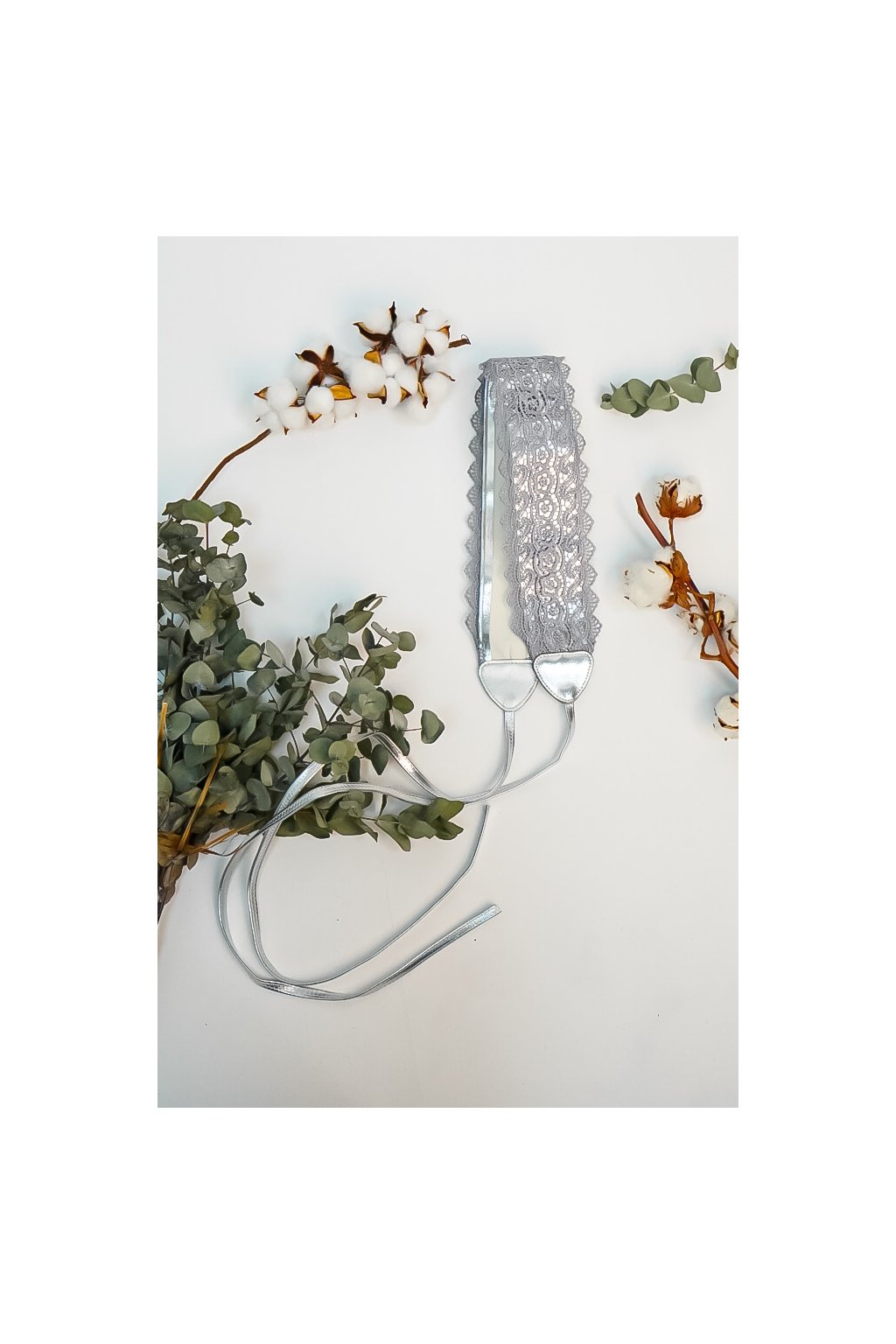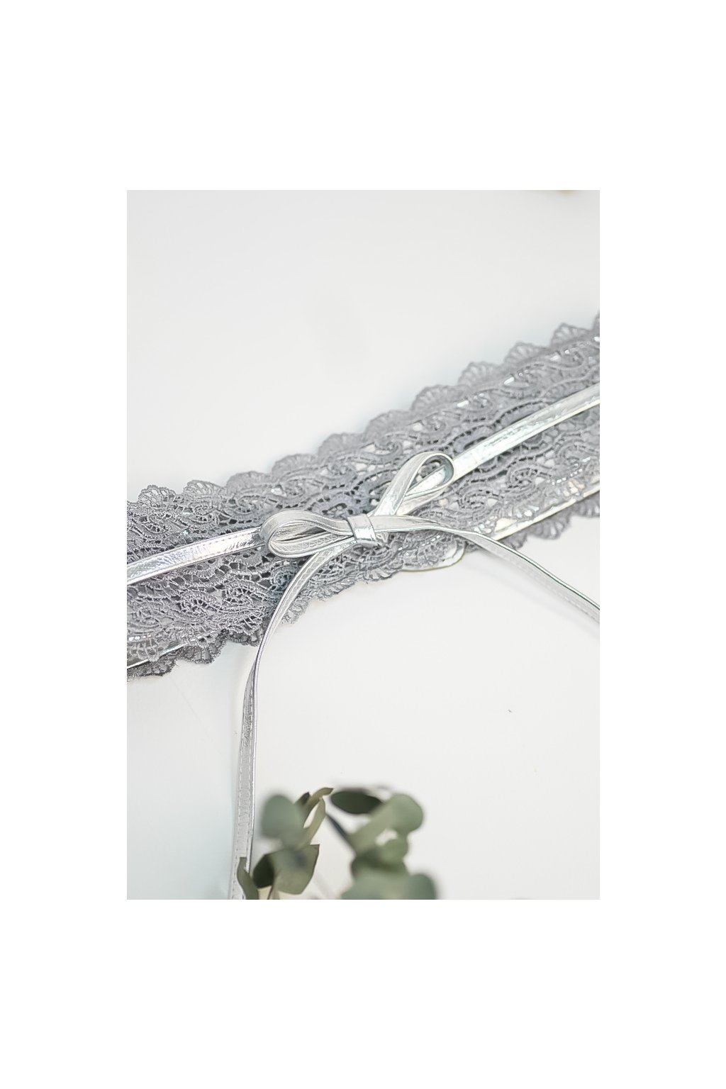 Viazací opasok z napodobeniny kože potiahnutý ozdobnou krajkou v čiernej farbe. Opasok sa viaže na mašličku.