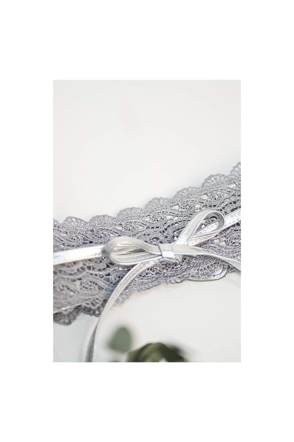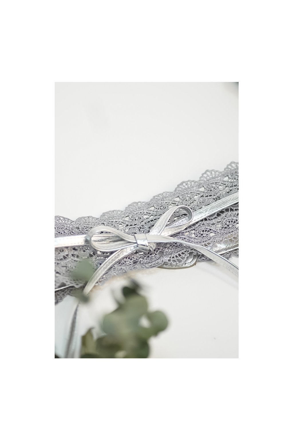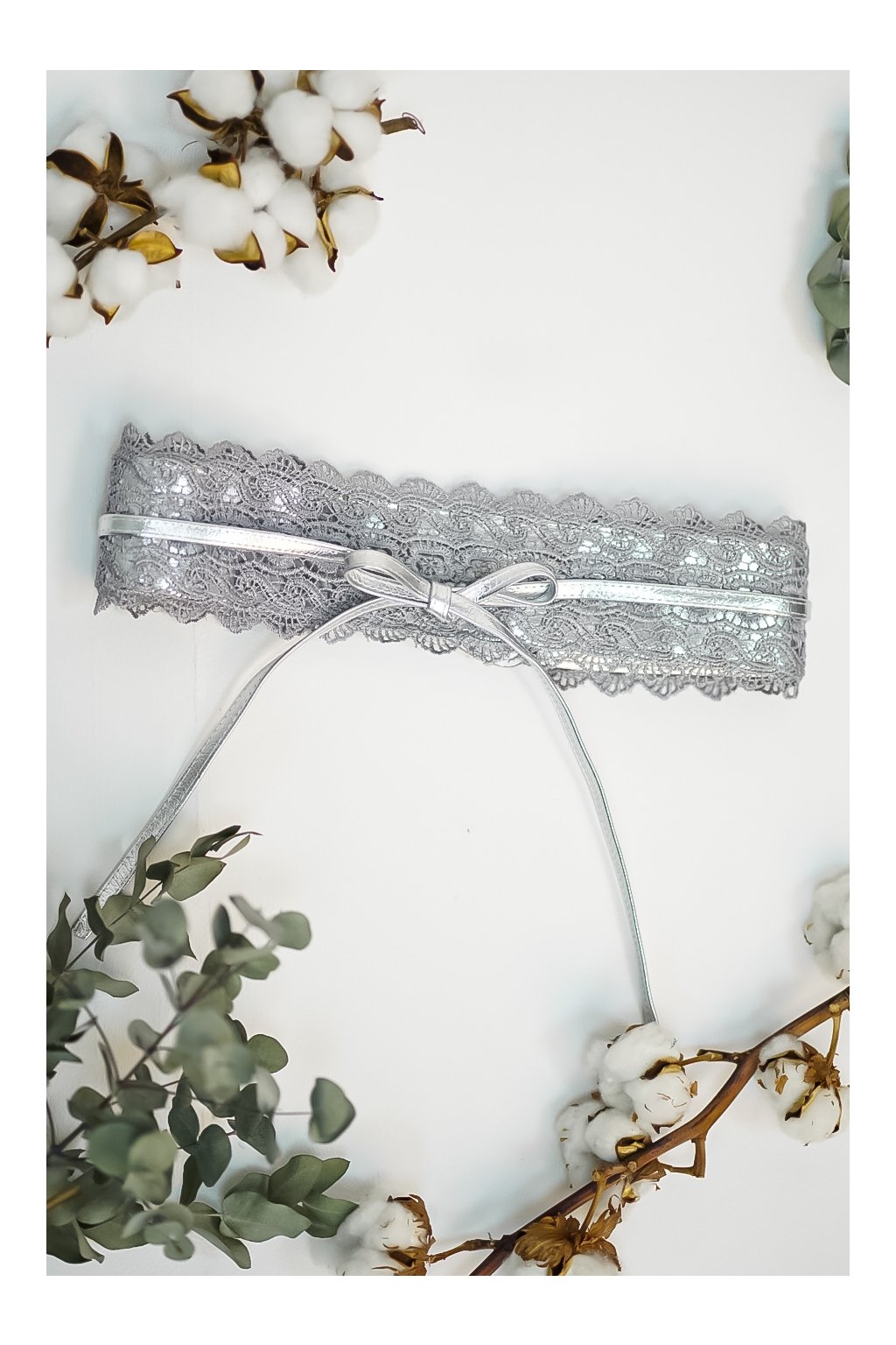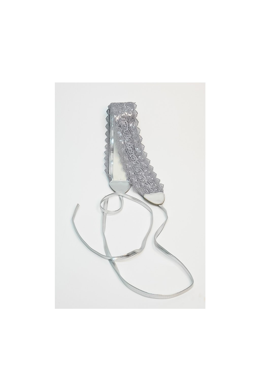 Viazací opasok z napodobeniny kože potiahnutý ozdobnou krajkou v čiernej farbe. Opasok sa viaže na mašličku.