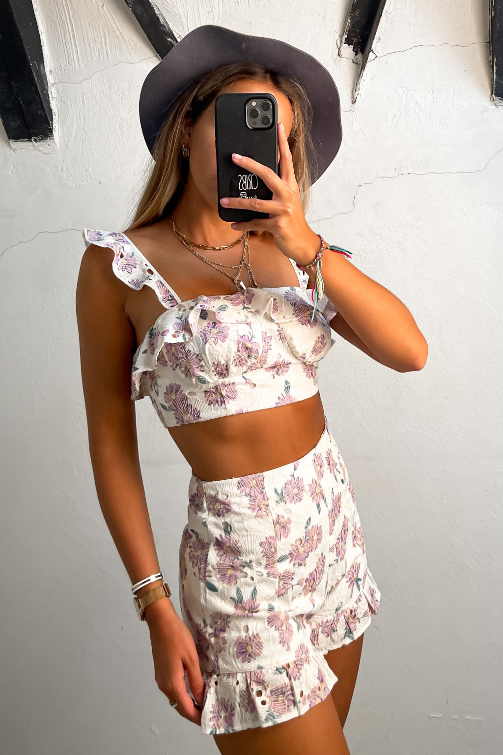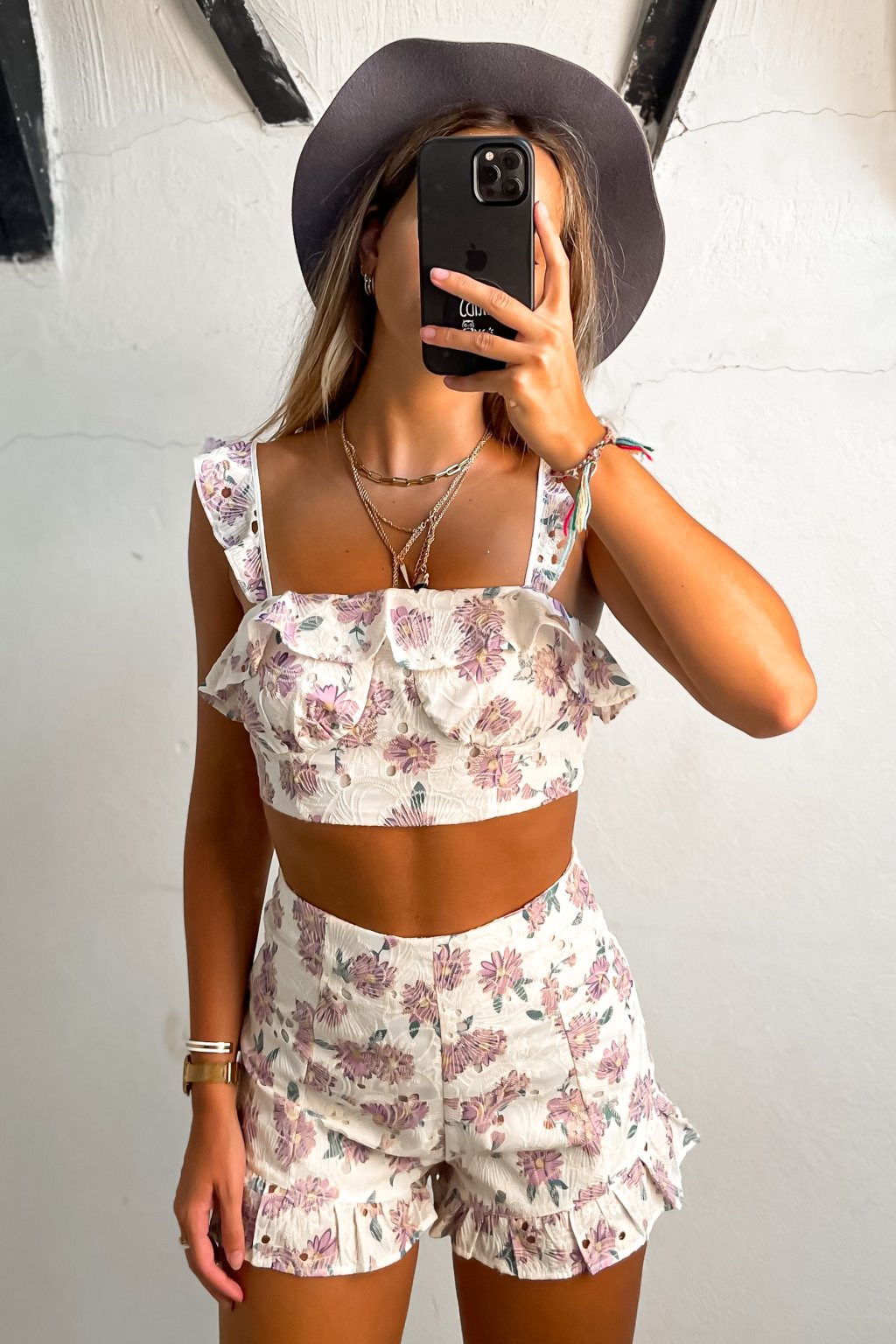 Vyšívaný kvetinový crop-top na ramienka s nastavením.