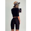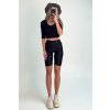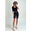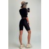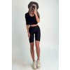Čierne elastické biker šórtky s vysokým pásom z lesklého materiálu.