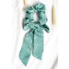 Komplet dvoch jednofarebných gumičiek do vlasov v modrej a ružovej farbe s odoberateľnou ozdobnou mašličkou.