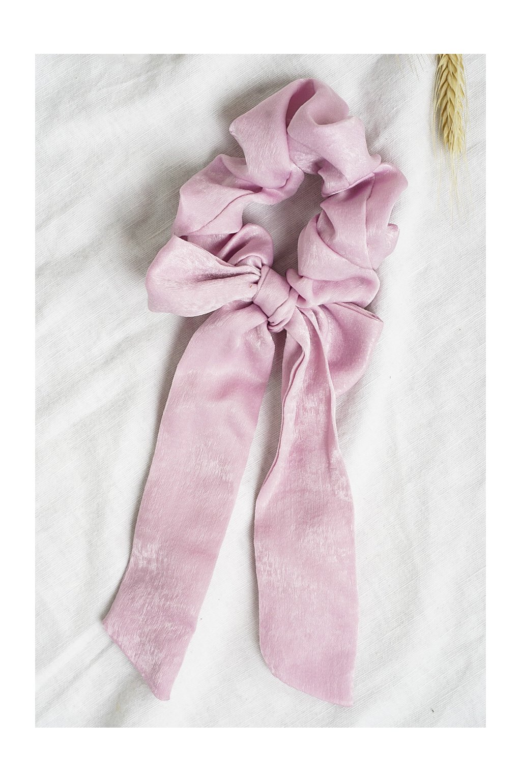 Komplet dvoch jednofarebných gumičiek do vlasov v modrej a ružovej farbe s odoberateľnou ozdobnou mašličkou.