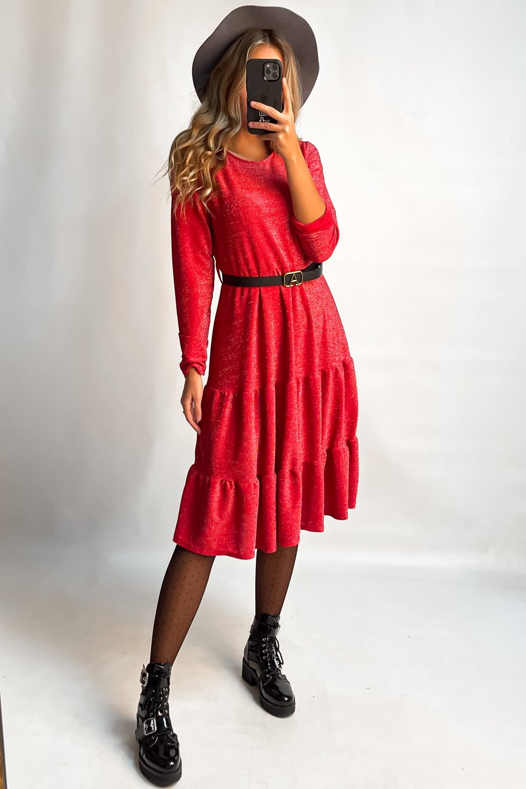 Lurexové šaty červené