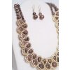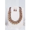 Súprava hnedého náhrdelníka z prírodných kameňov so zlatou zaplietanou reťazou a predlžovacou retiazkou pre možnosť nastaviteľného zapínania na karabínku doplnený o náušnice so zapínaním na háčik z toho istého materiálu.