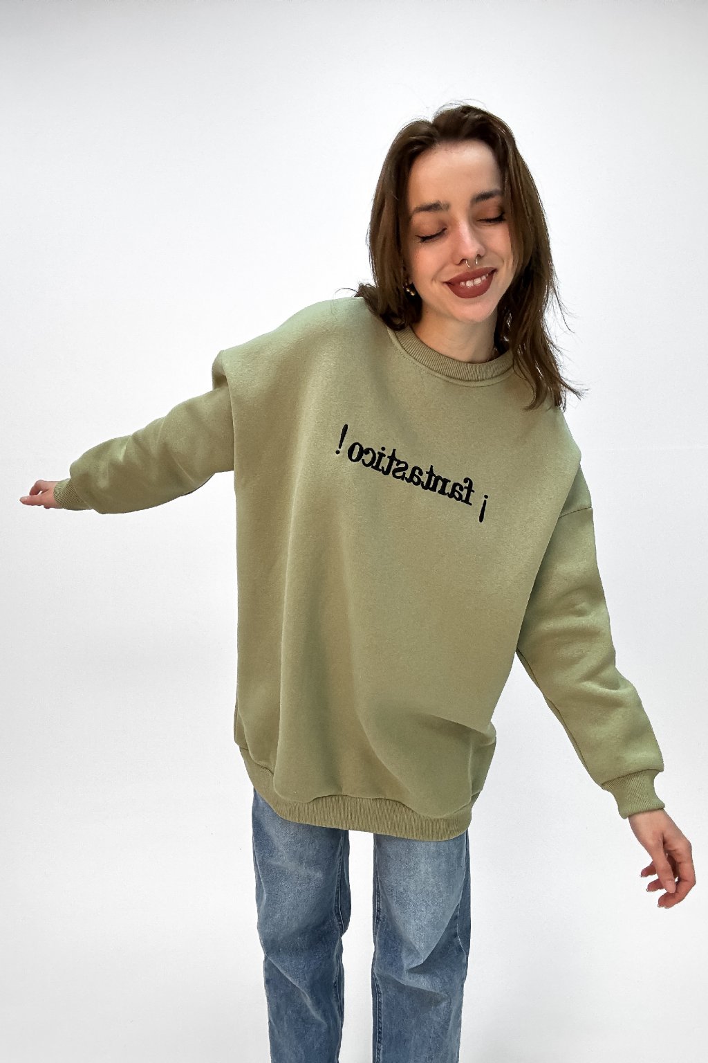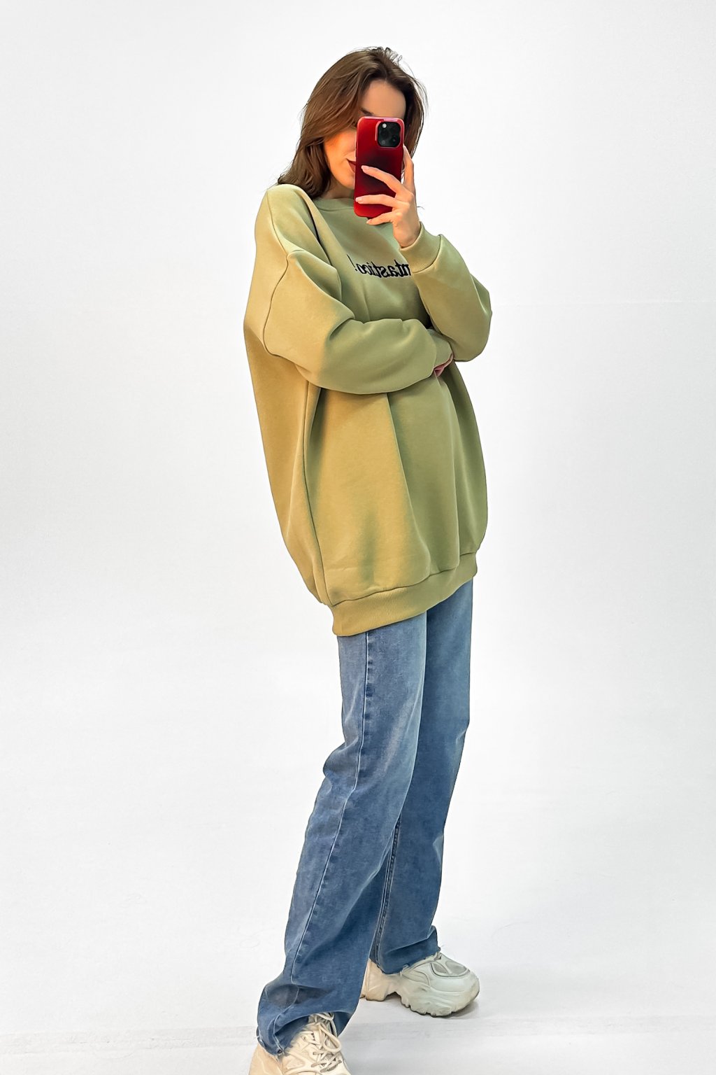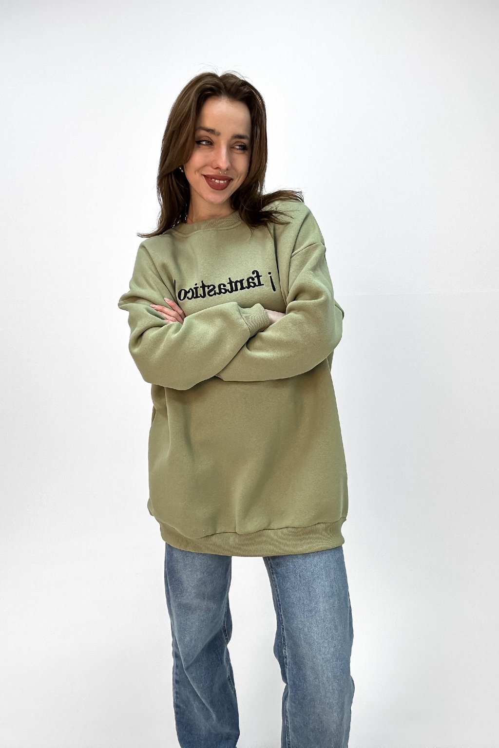 Dlhá oversize mikina s nápisom zelená