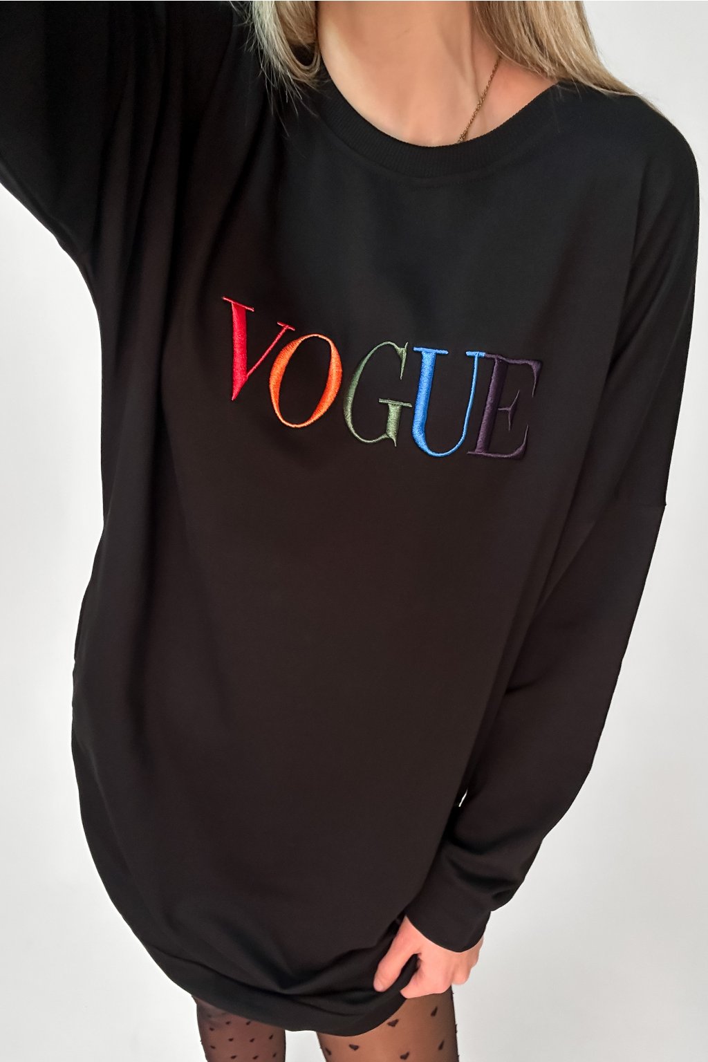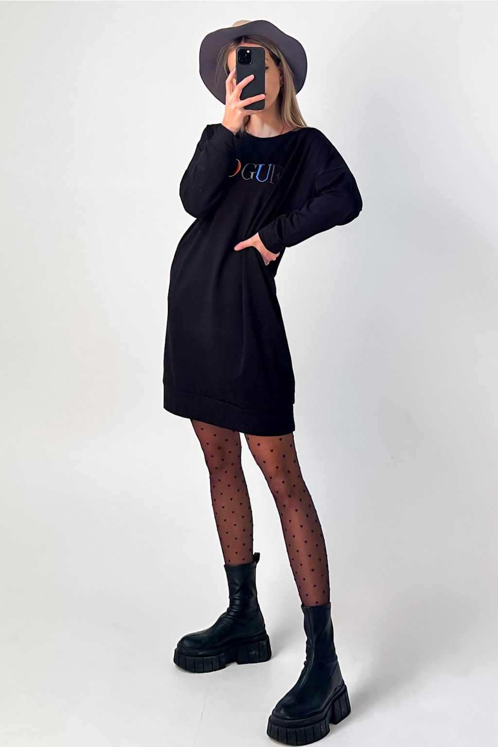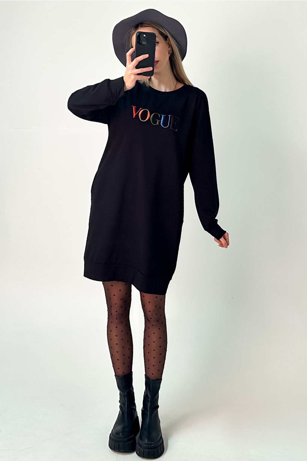 Oversize pohodlná mikinová tunika s vyšívaným nápisom a vreckami čierna