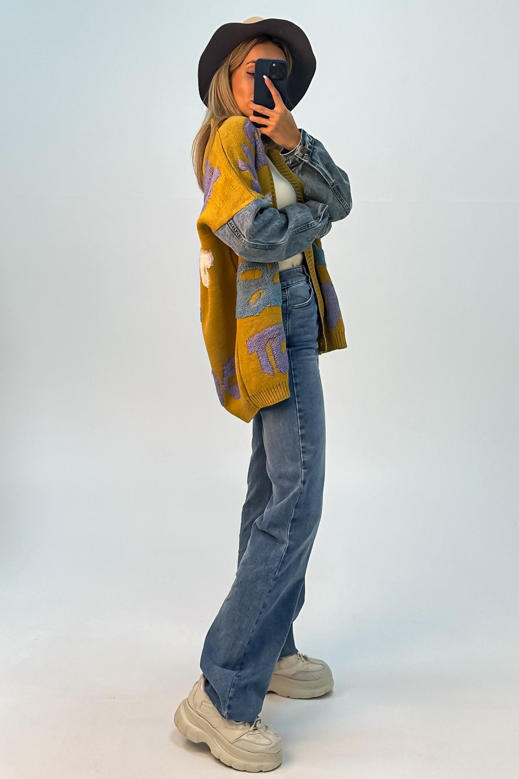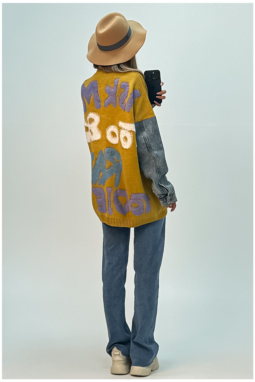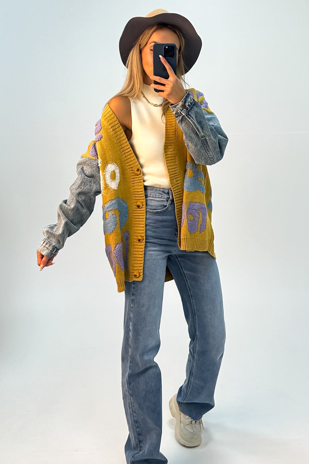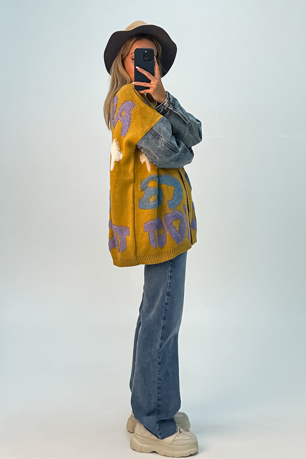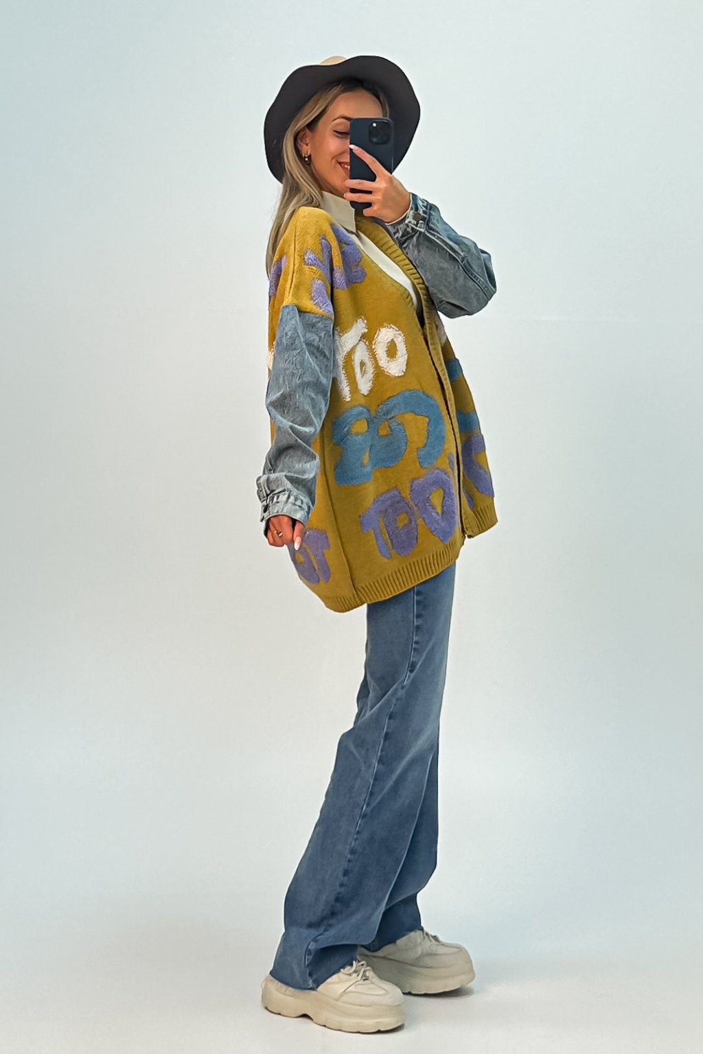 Sveter so zapínaním na gombíky a džísovými rukávmi vo voľnom strihu.