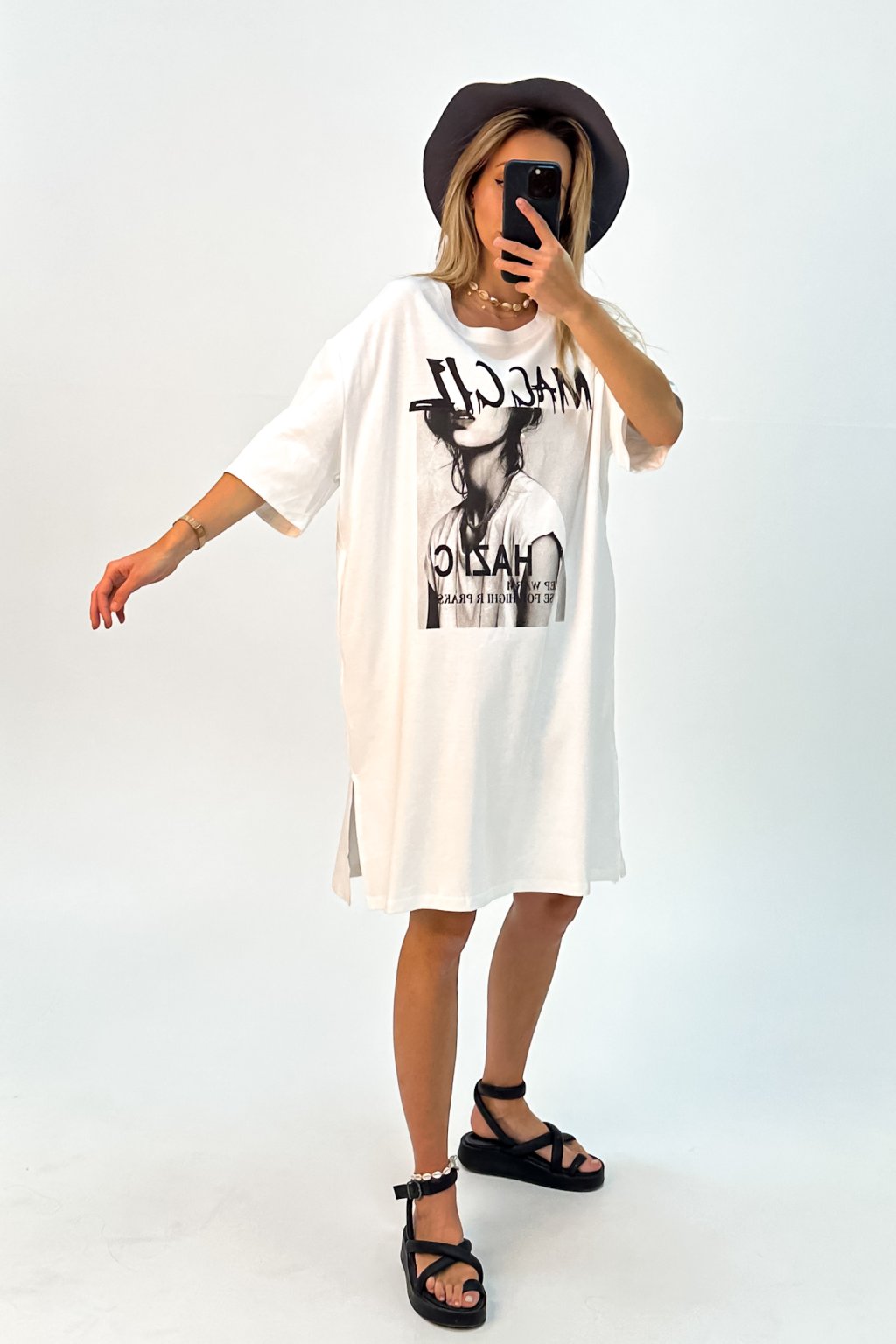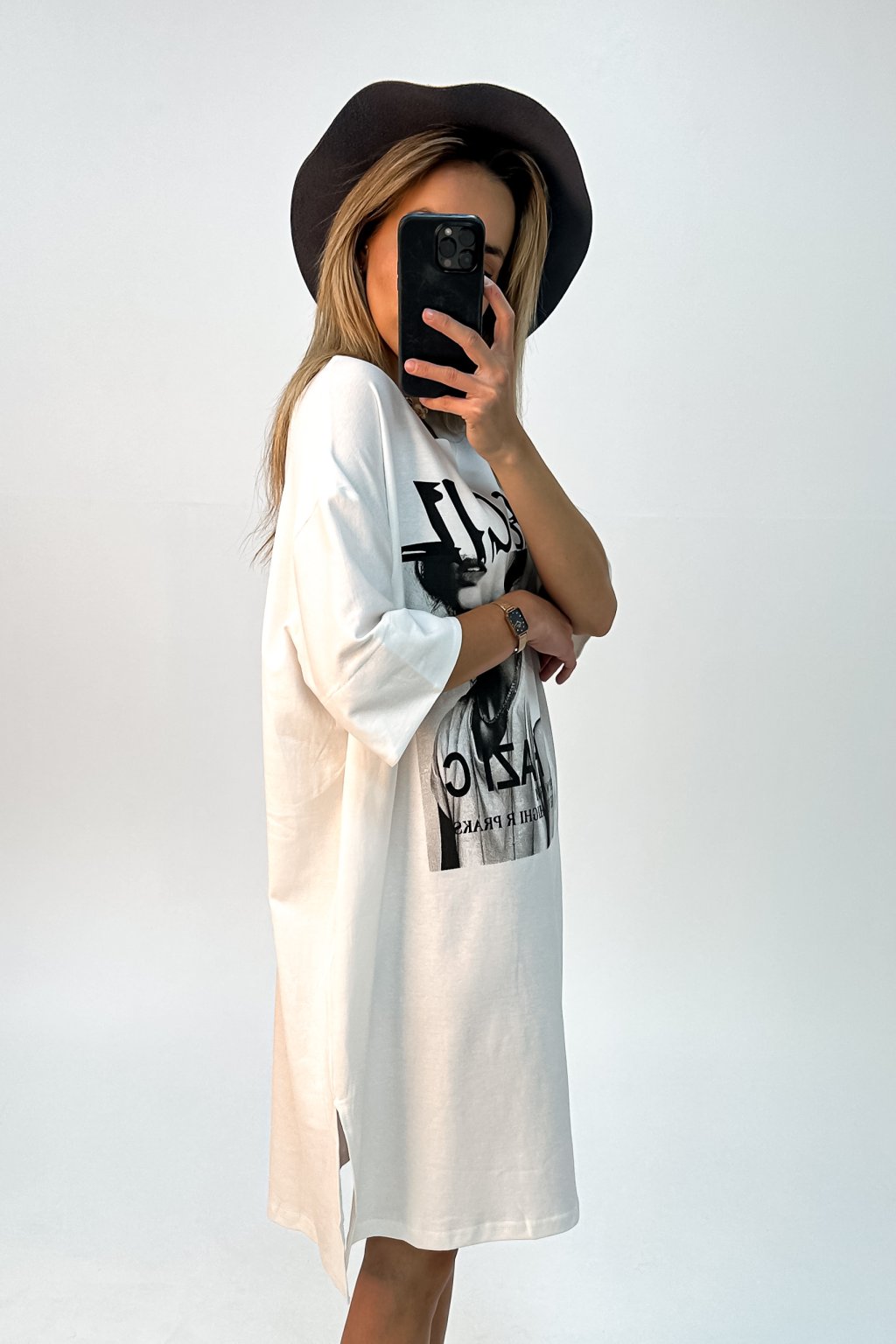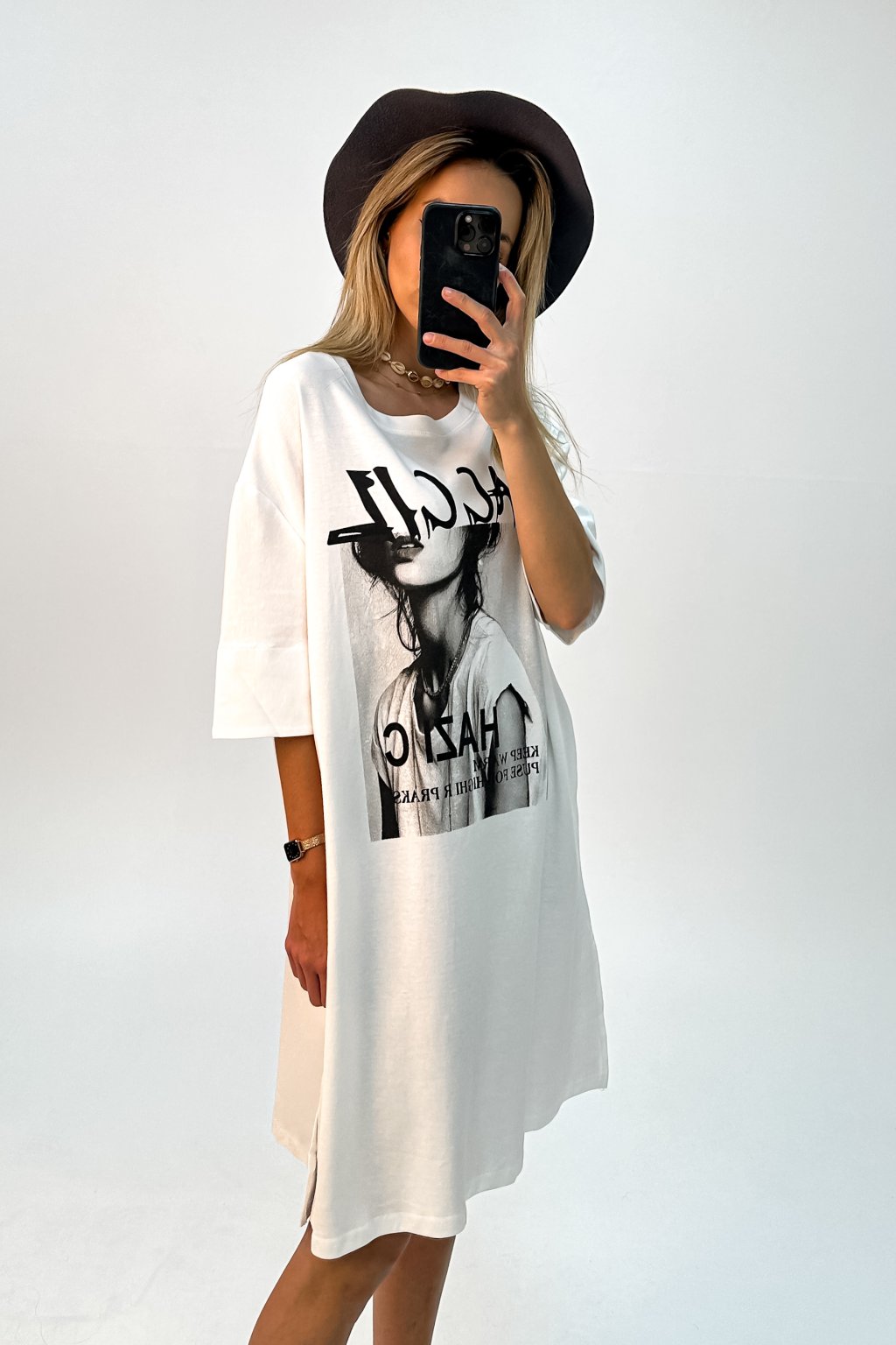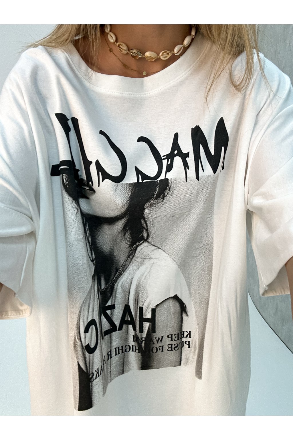 Oversize tričkové šay s potlačou biele