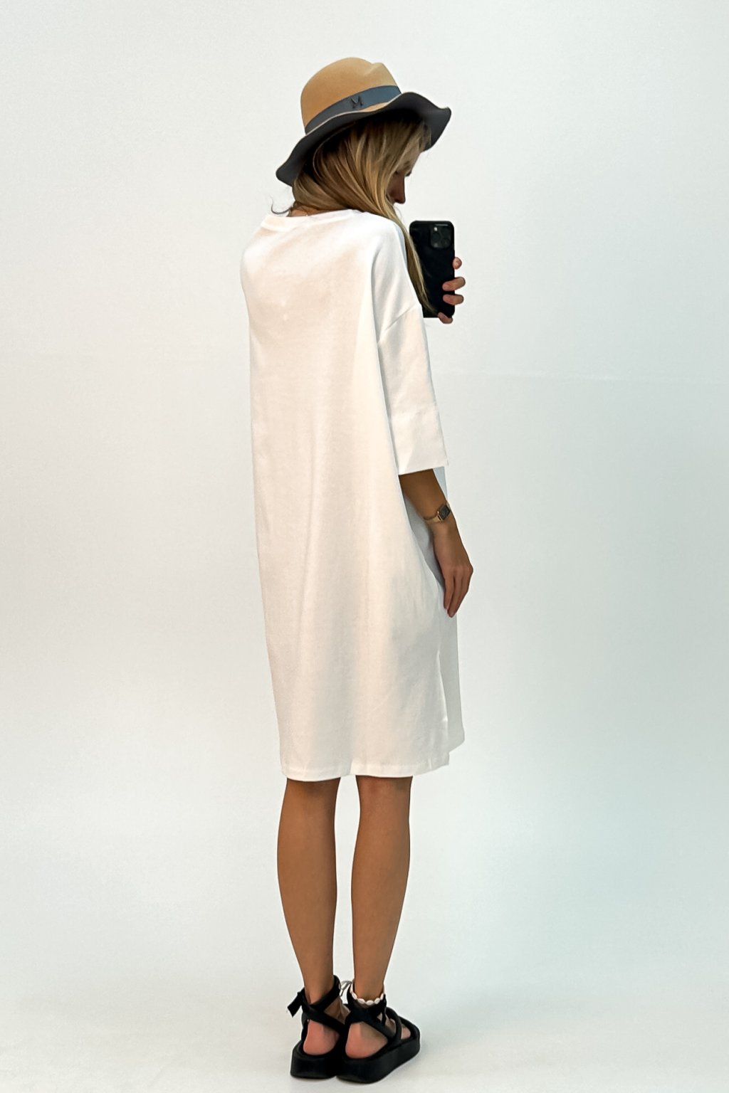 Bavlnené dlhé tričko vo voľnom strihu s rozparkami a vreckami, možné nosiť ako tuniku, či šaty a kombinovať s opaskom. Opasok nie je súčasťou produktu.