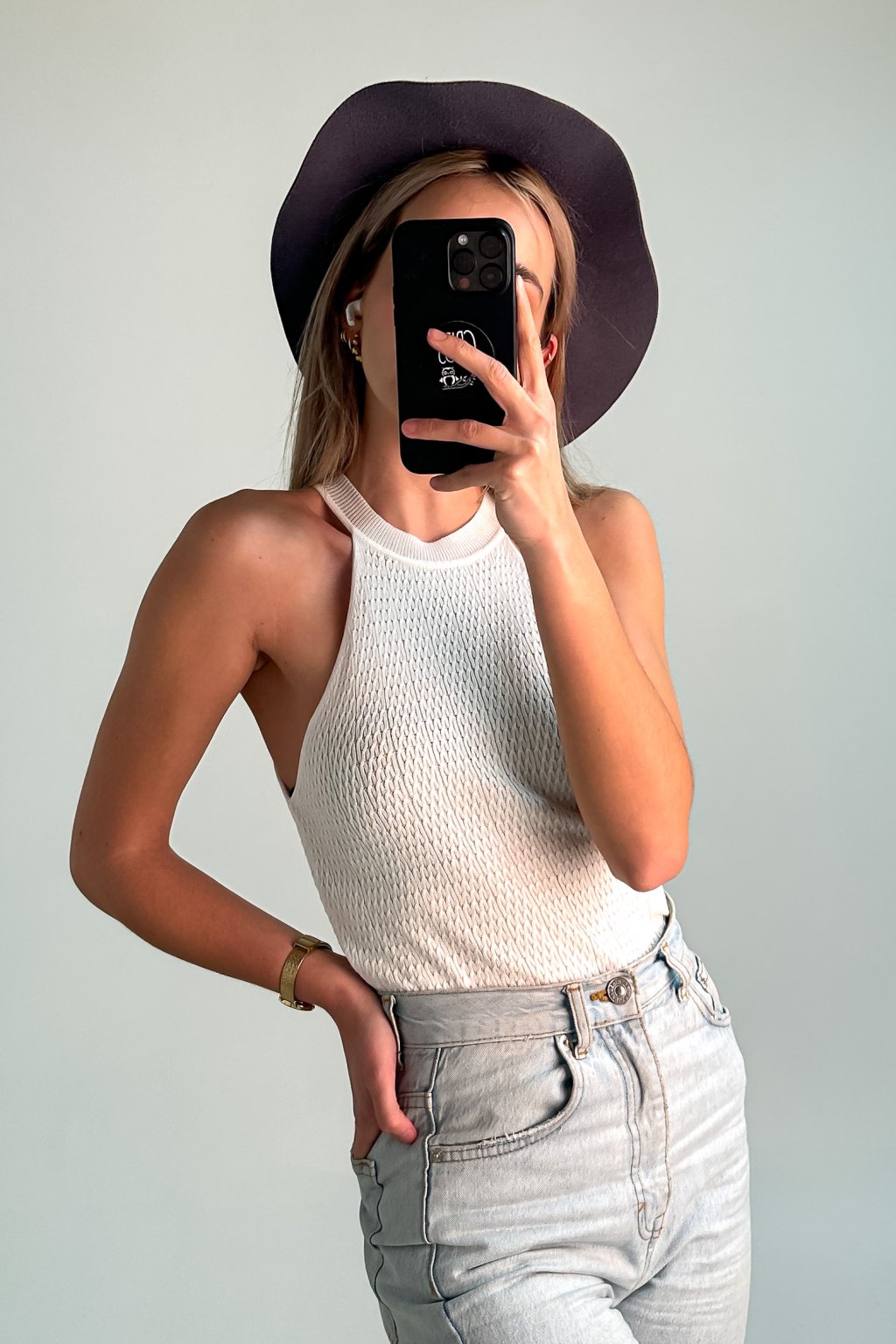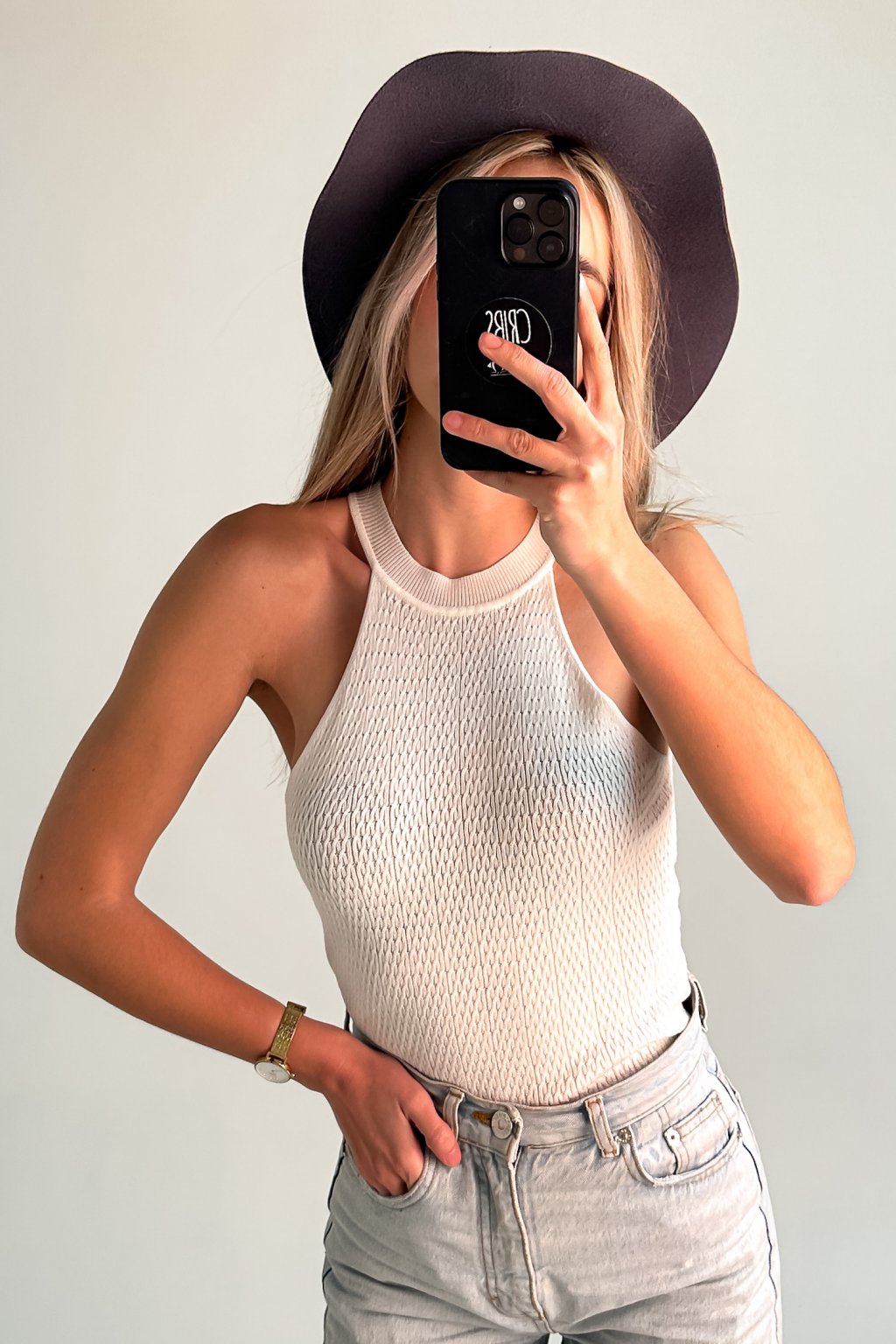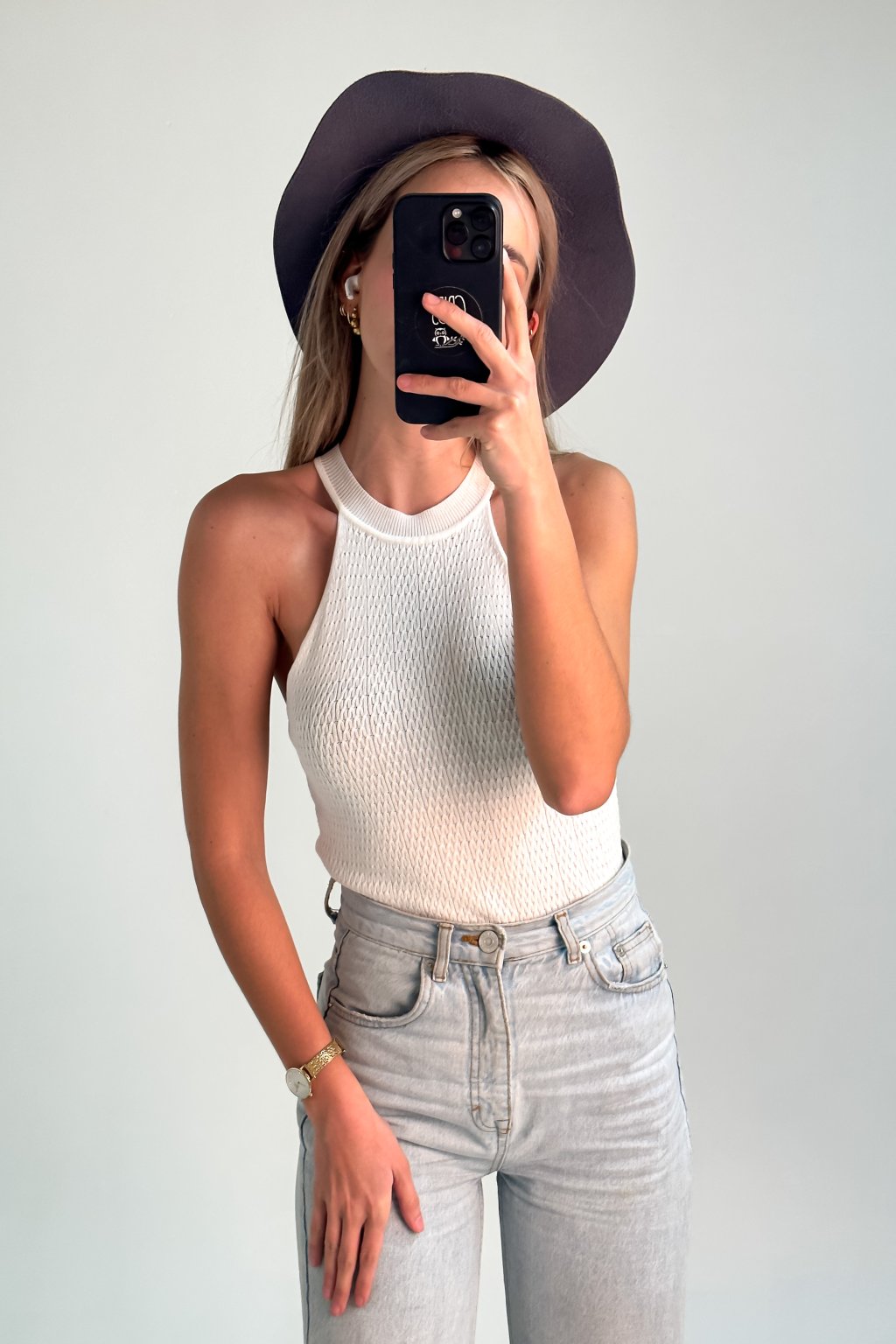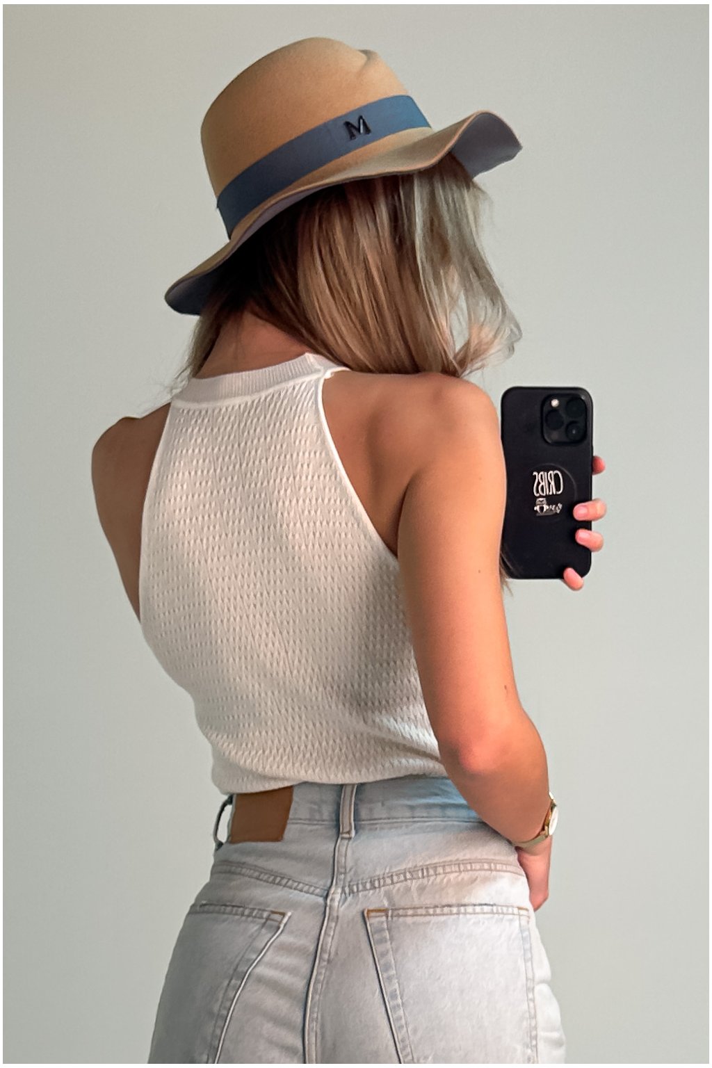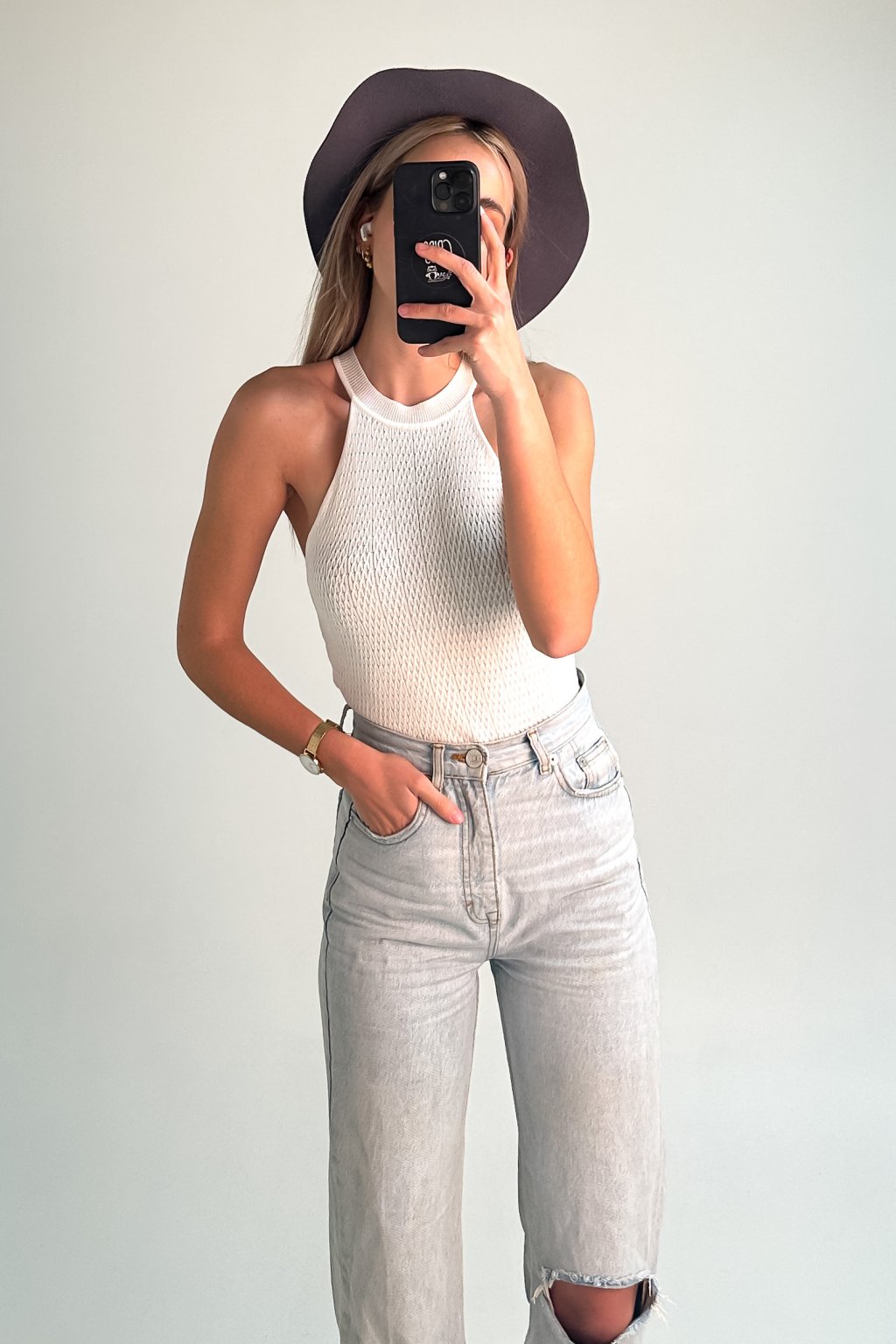 Elastický top z mäkkého úpletu, ktorý zdôrazňuje kľúčne kosti a vďaka svojej jednoduchosti je ľahko kombinovateľný do outfitov.