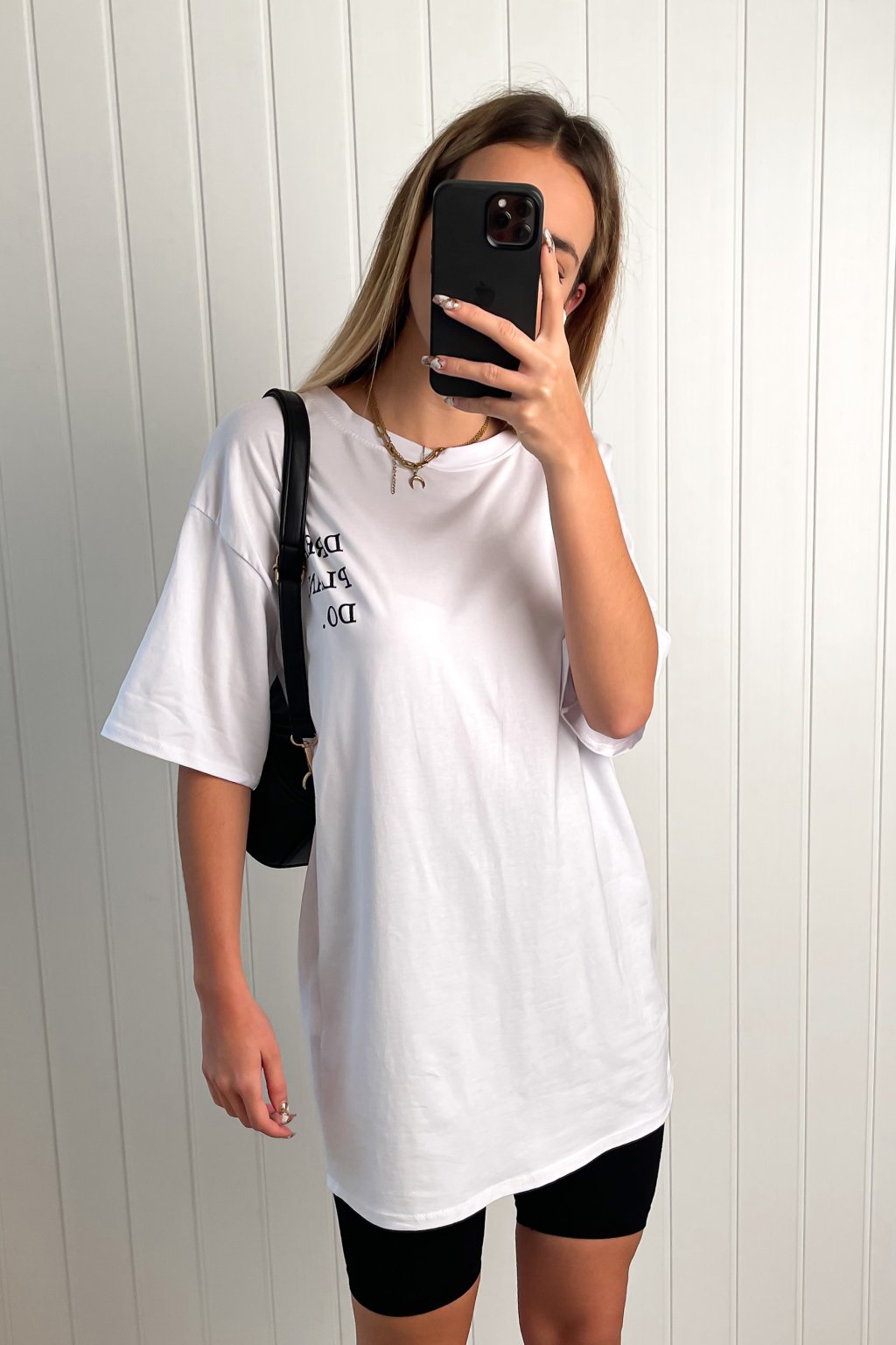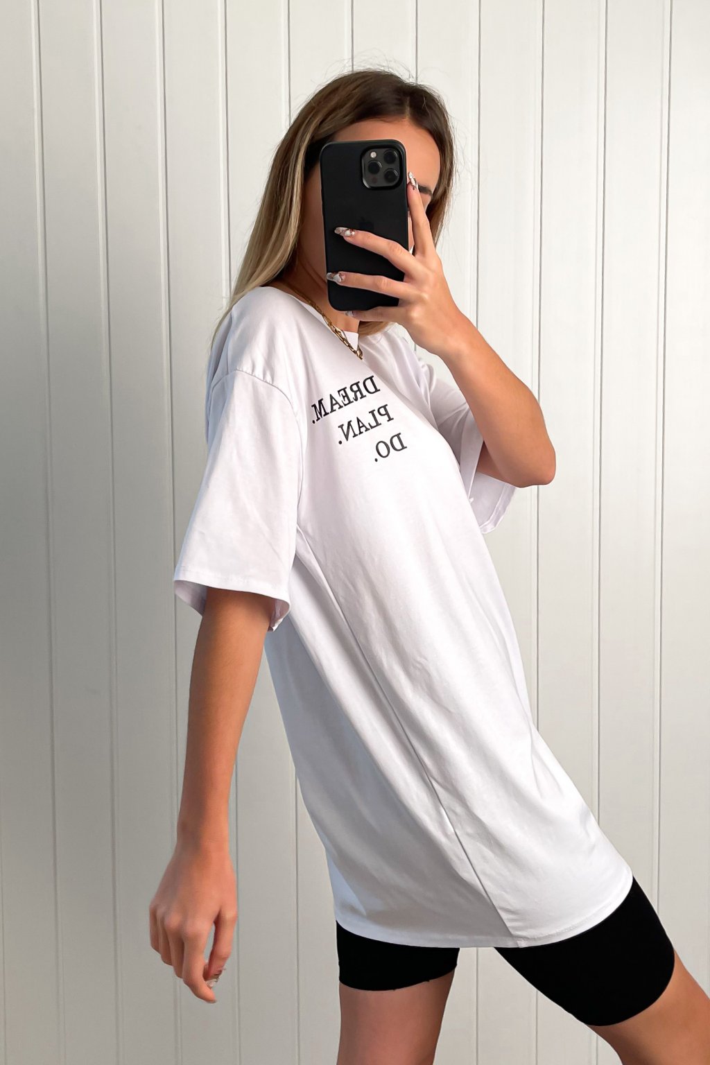 Dlhé biele tričko z bavlny s nápisom "DREAM.PLAN.DO".