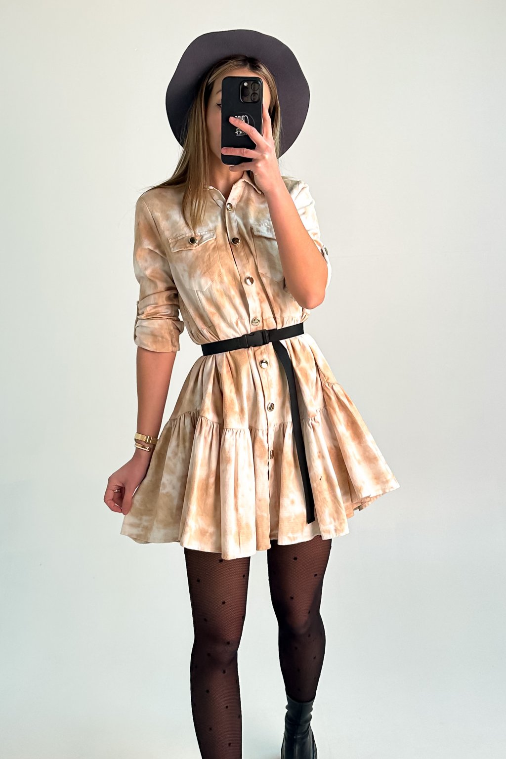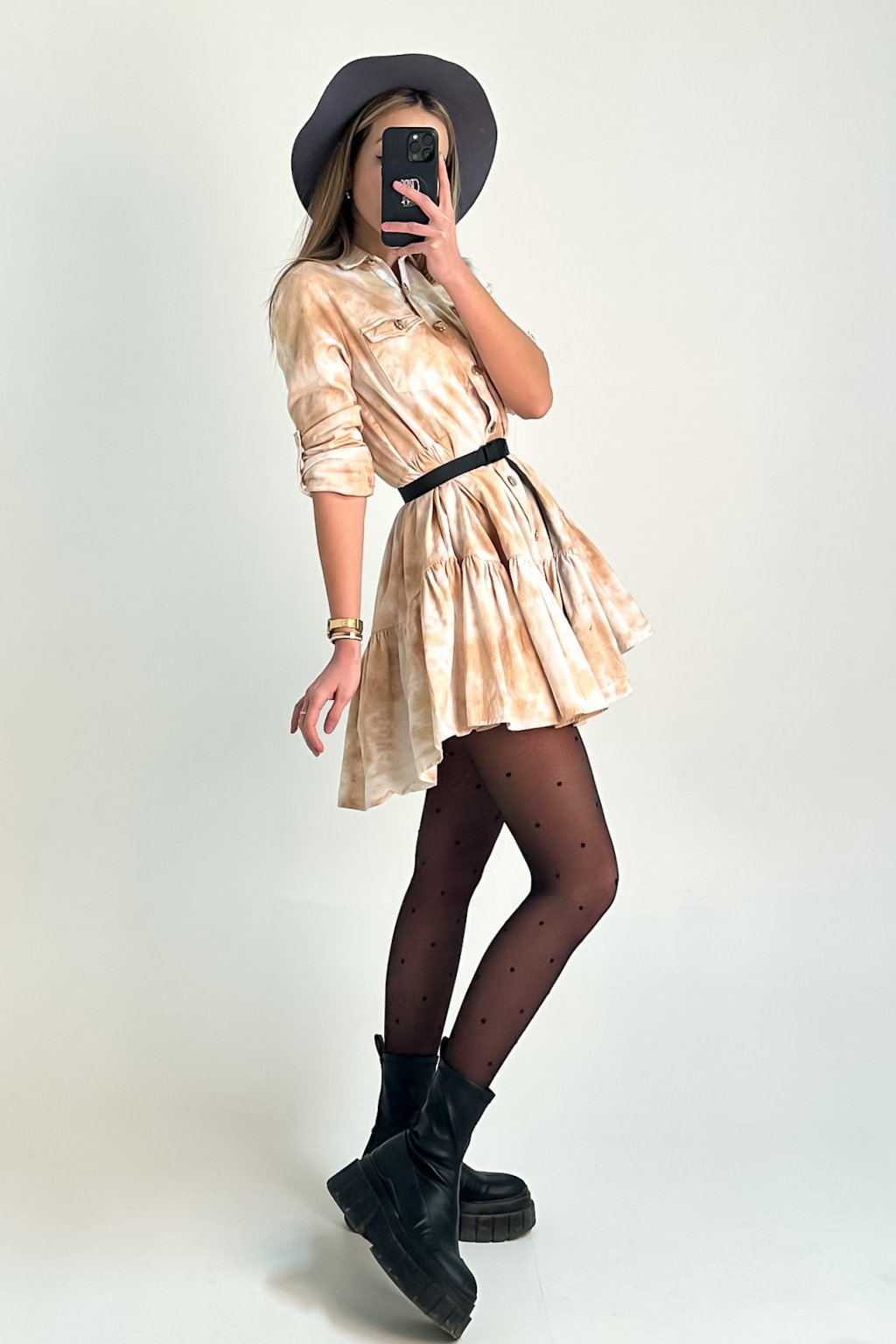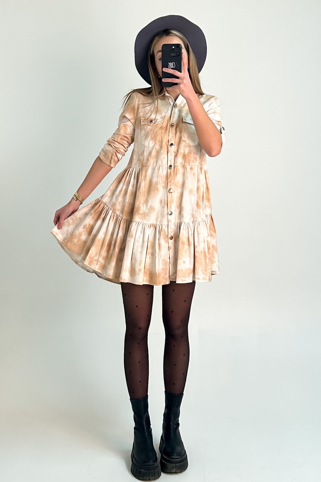 Košeľové dvojfarebné šaty z rifľoviny. Opasok nie je súčasťou.