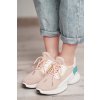 Dámske vzdušné tenisky z ružovej textílie postavené na bielej podrážke s prívlastkom Ugly Shoes s vyberateľnými vložkami zdobené farebnými plátkami z imitácie kože.