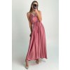 Dlhé šaty s rozparkom a s nastaviteľnými ramienkami.