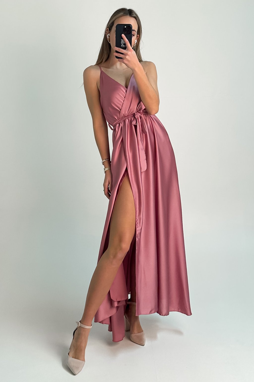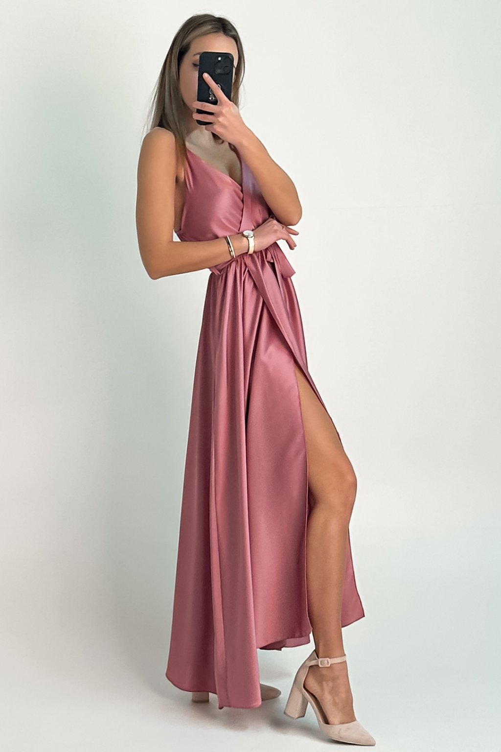 Dlhé šaty s rozparkom a s nastaviteľnými ramienkami.
