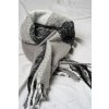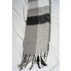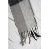 Dlhý viacfarebný kombinovaný šál v sivých tónoch z mäkkého príjemného materiálu na dotyk.