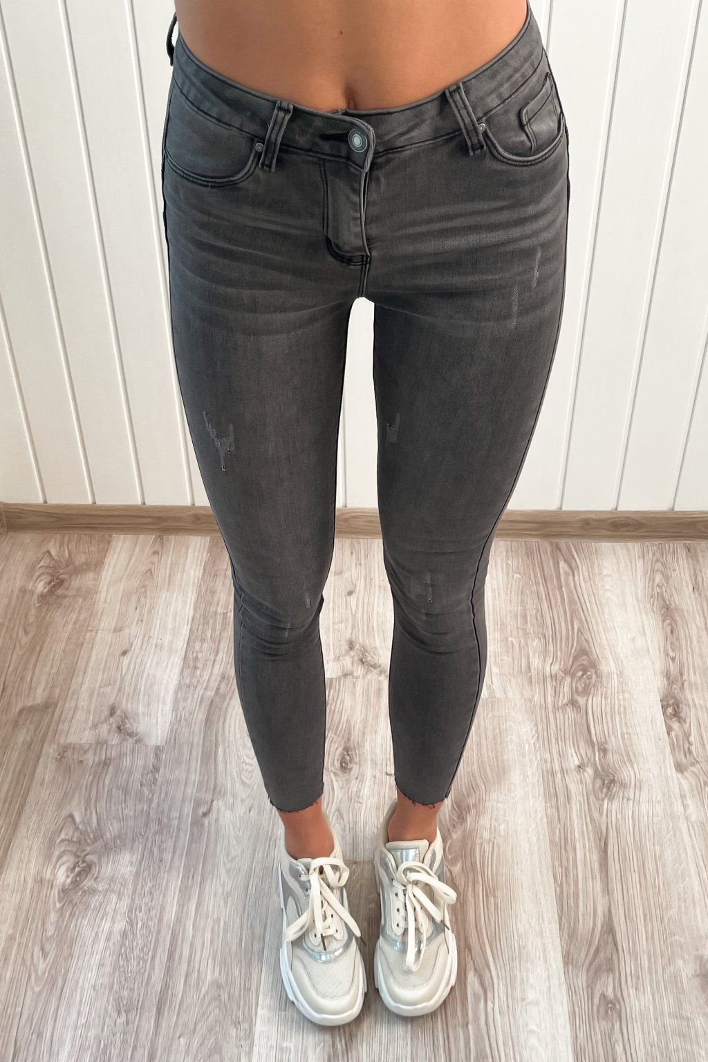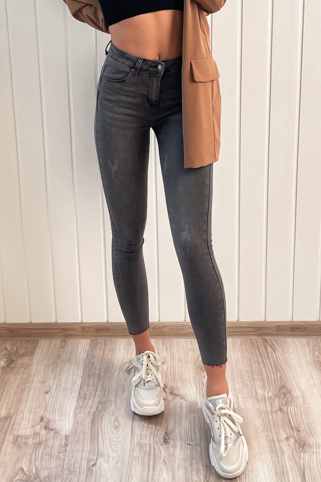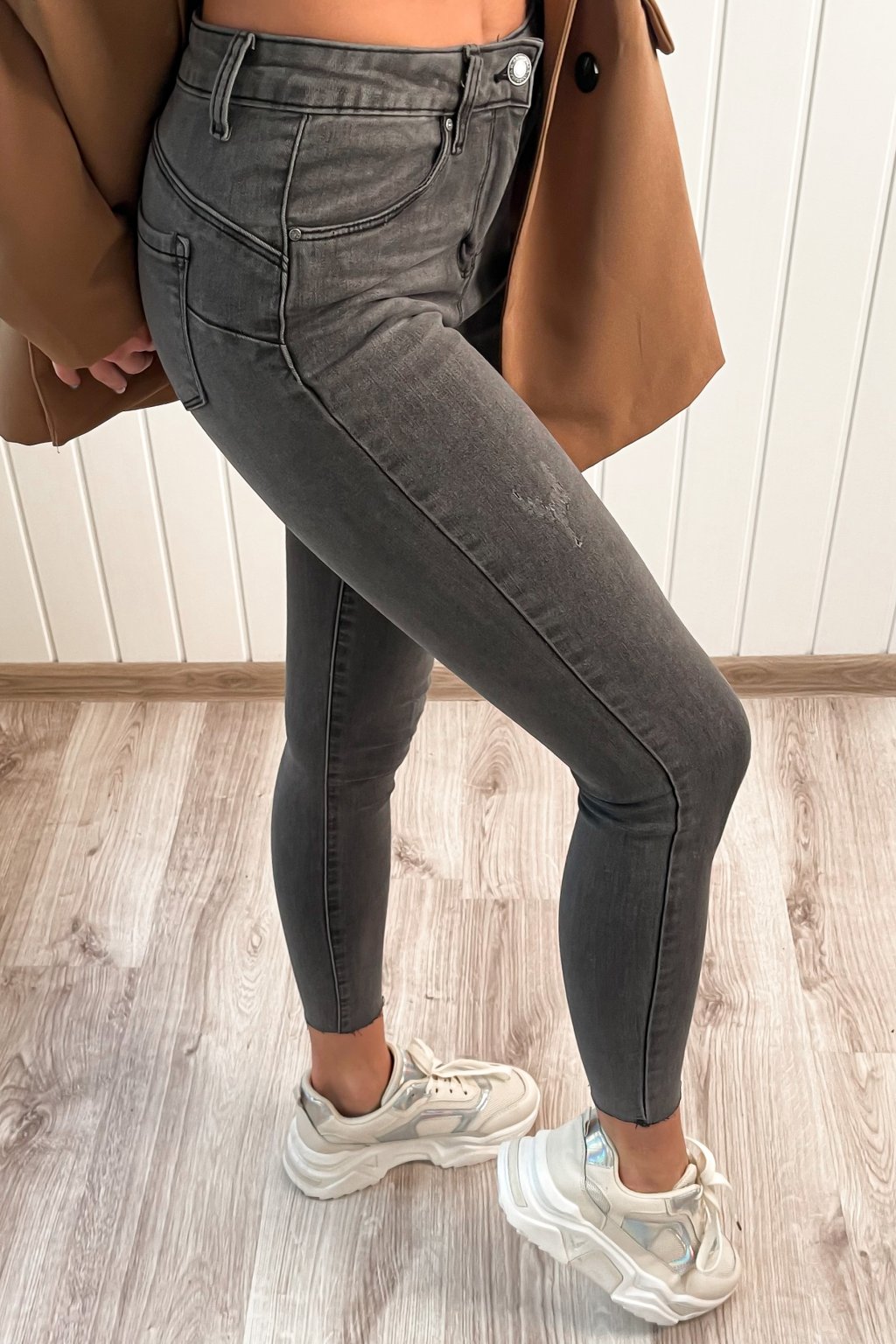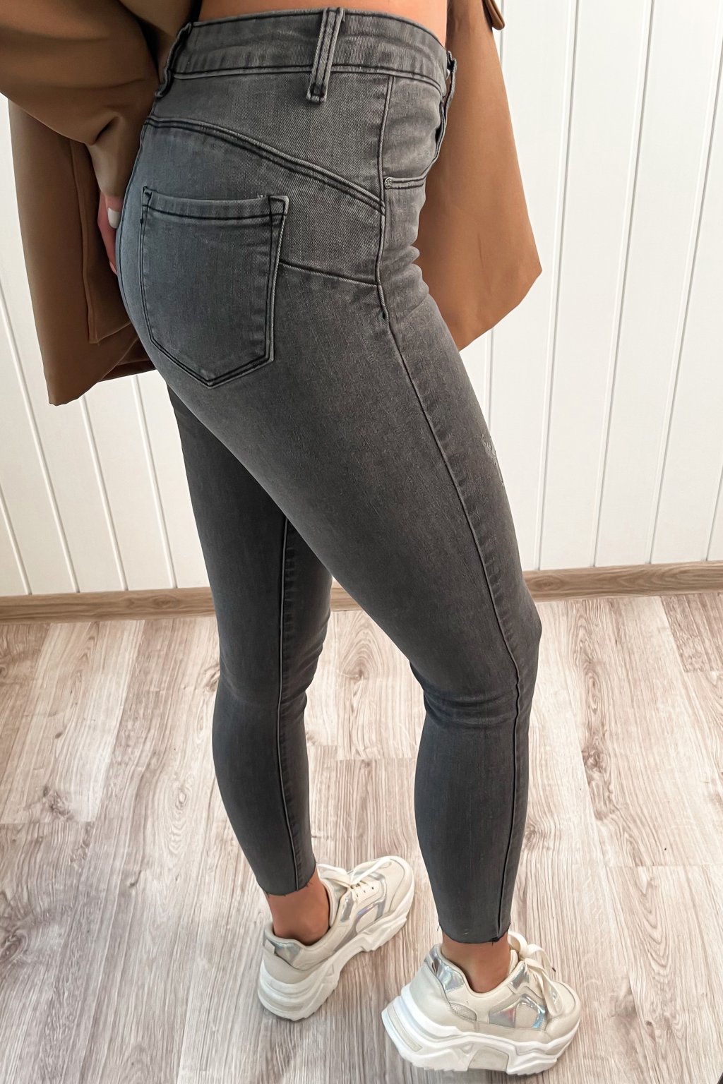 nSivé elastické rifle v slim strihu s push up efektom a neukončením spodnej časti.