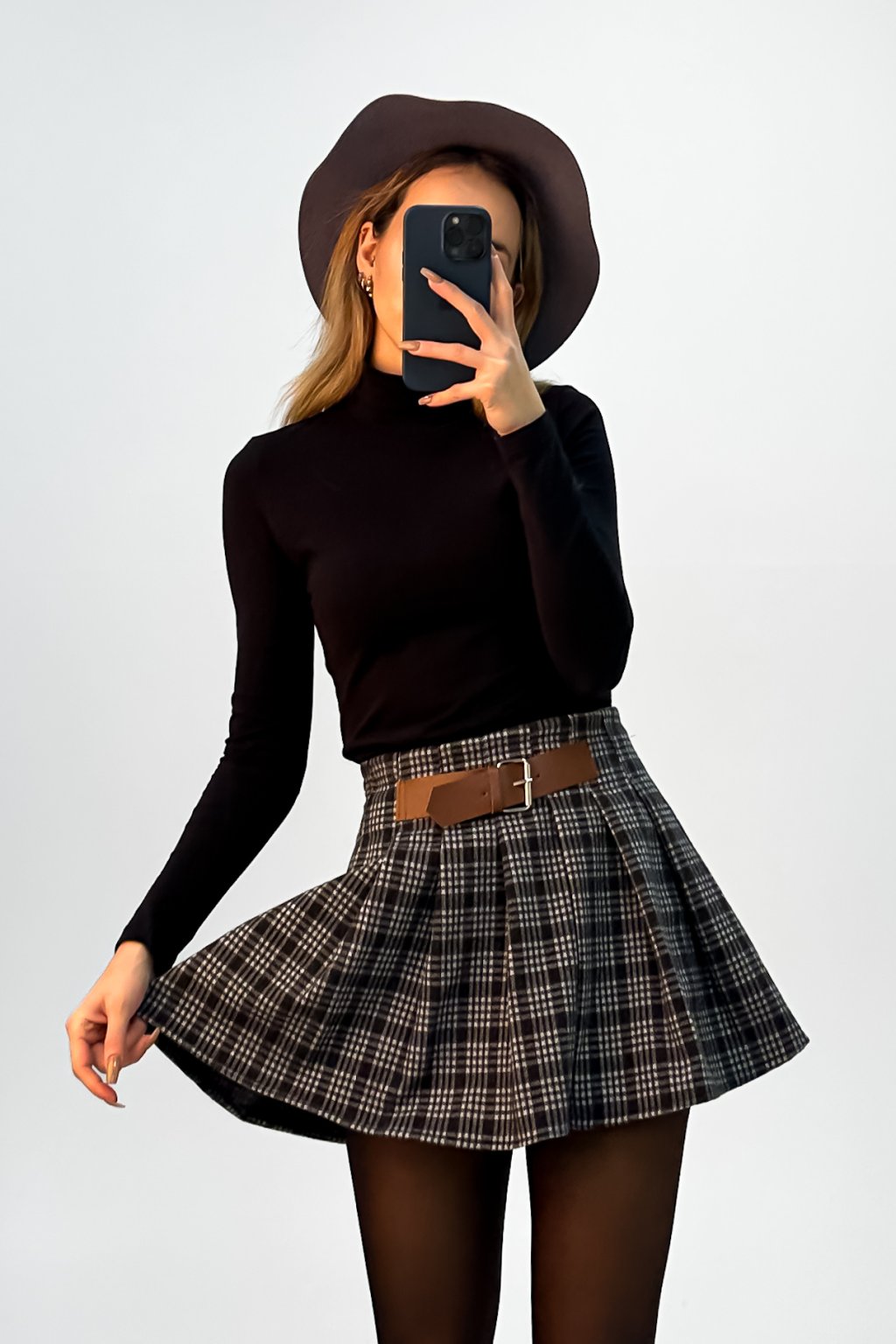 Skladaná sukňa s našitým opaskom a s podšívkou šórtiek.