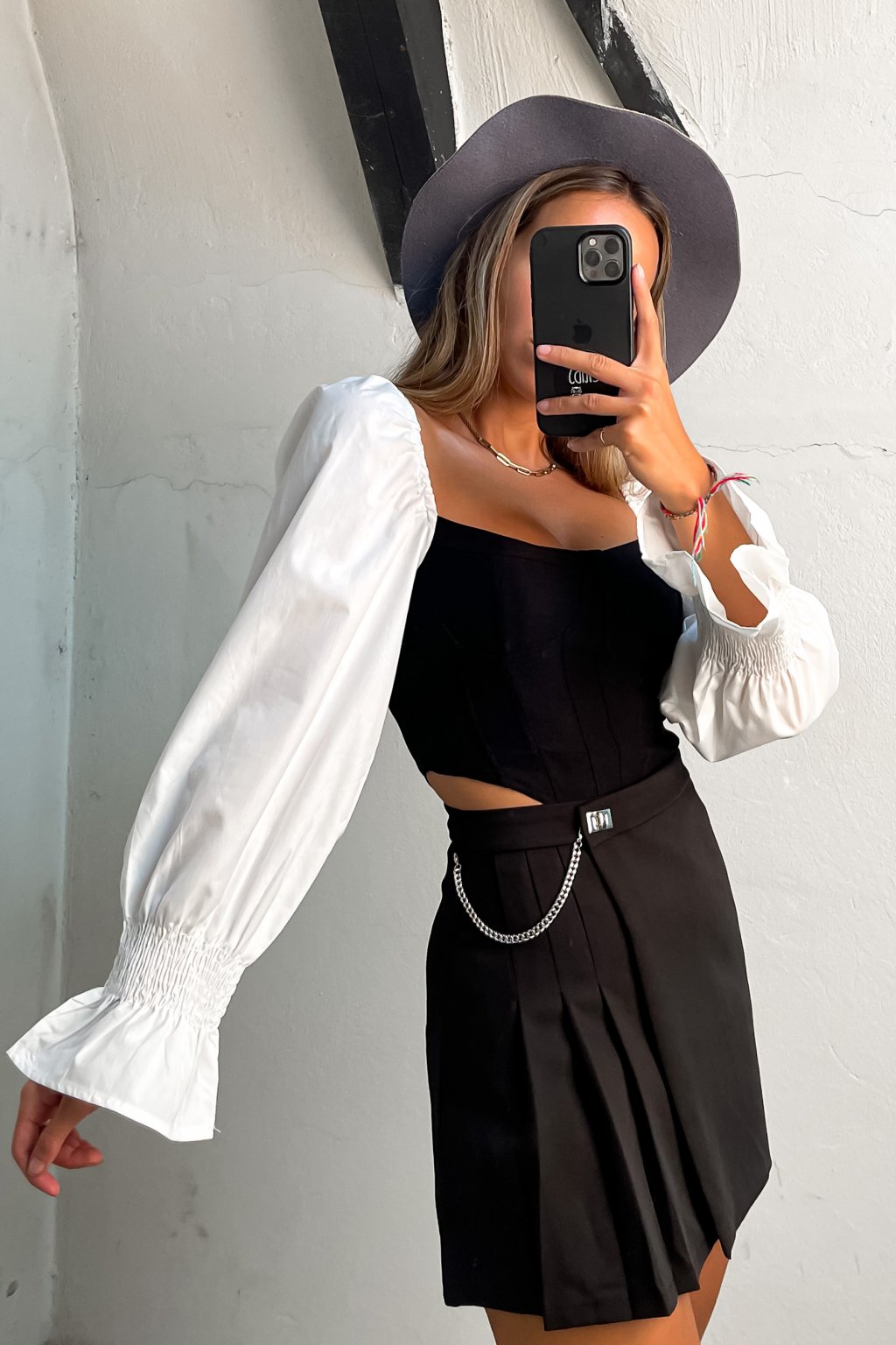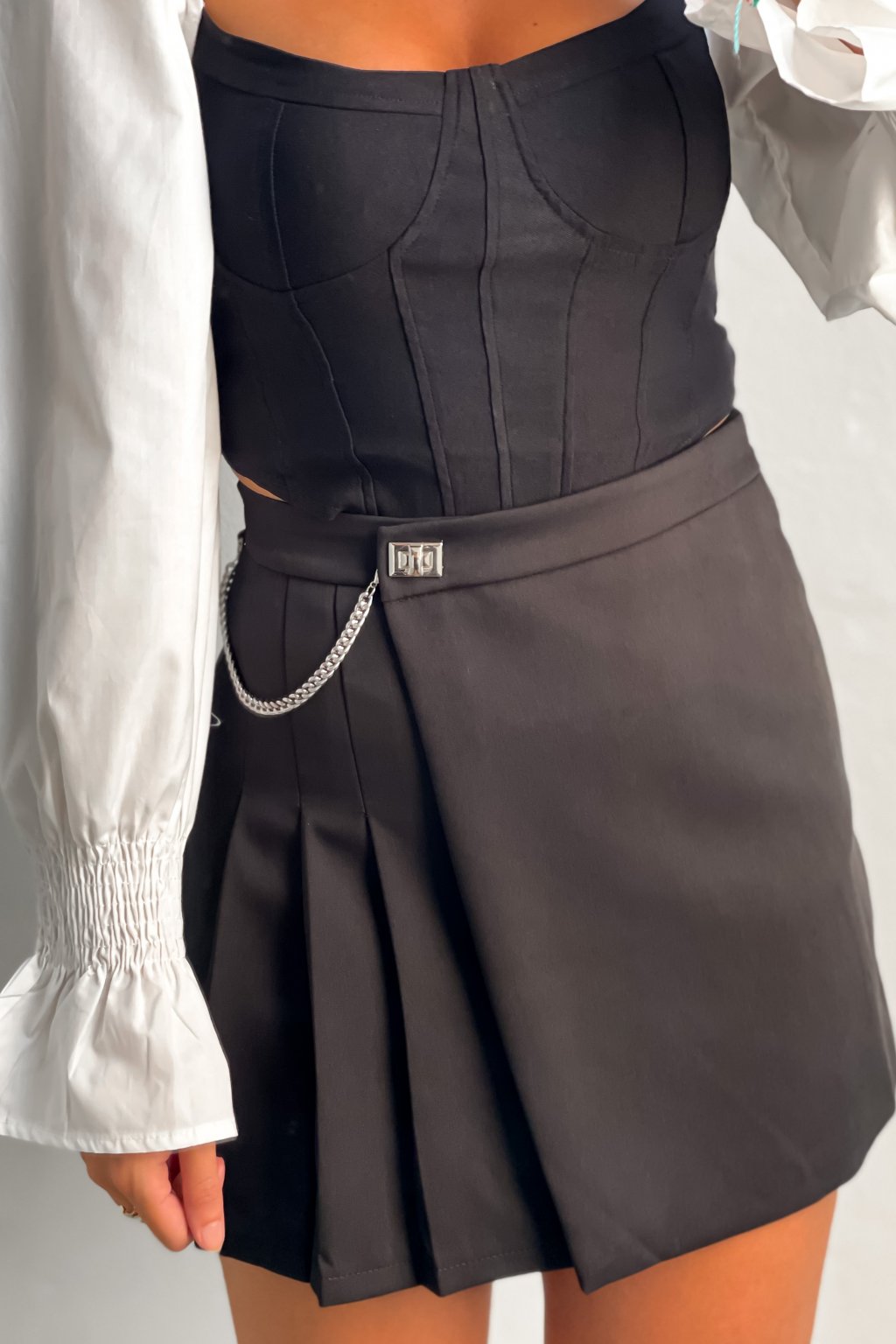 Skladaná sukňa s retiazkou čierna