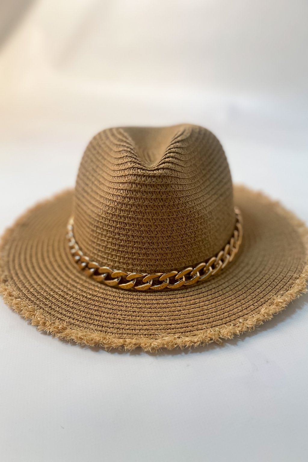 Klobúk vo veľkosti UNI so šnúrkou vo vnútornej strane pre nastavenie veľkosti s ozdobnou reťazou.